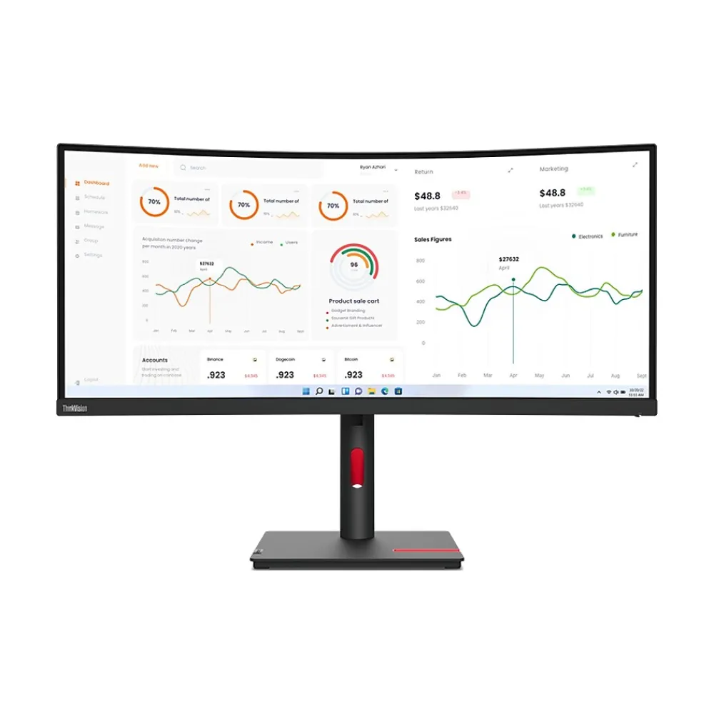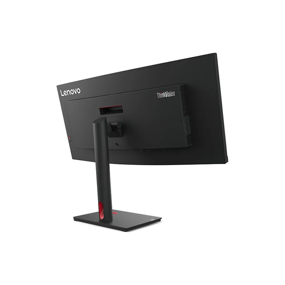 Get ready to take your efficiency to the next level with the Lenovo ThinkVision T34w-30 monitor’s three-side NearEdgeless, immersive 34″ WQHD curved display that draws you in, while its 3440 x 1440 resolution lets you take in all the finer details. A 21:9 aspect ratio delivers a panoramic experience, while a 1500R curvature delivers a consistent focal length across the screen. The large screen real-estate and curvature make sharing finer details with your teams easy and improves your focus and productivity as well. The monitor is a treat for the eyes with rich, vivid colors brought to life by a 99% sRGB color gamut. It cares for your vision too with Natural Low Blue Light technology that reduces harmful blue light emissions without color distortions. The ThinkVision T34w-30 monitor is designed for efficiency with a host of connectivity options including a USB Type-C (up to 75W PD), HDMI and DP ports, modular VoIP support for a video conferencing or audio with AI-enhanced MC60 and MS30 ports, and efficient network management with MAPT, PXE, and WOL (S3-S5). The ThinkColour software solution that can be easily deployed by Endpoint allows users quick control of display attributes, to help maximize productivity. The monitor’s enhanced lift range gives it more flexibility to meet the working posture you find most comfortable. The lowest position gets lower to give you even more viewing comfort. It accommodates an open-slot phone holder that also supports tablets of different sizes to put all your screens within view, while cleaner cable management adds to a clutter-free desk. If you’re looking for a cleaner desk, you can VESA mount this monitor too. The monitor’s one-button joystick for quick access to display controls puts accessibility at your fingertips. You’ll be pleased to know that the ThinkVision T34w-30 monitor meets the ecological and health standards of TCO 9.0 regulations and comes packed in recyclable paper cushioning that’s safe for the environment too.