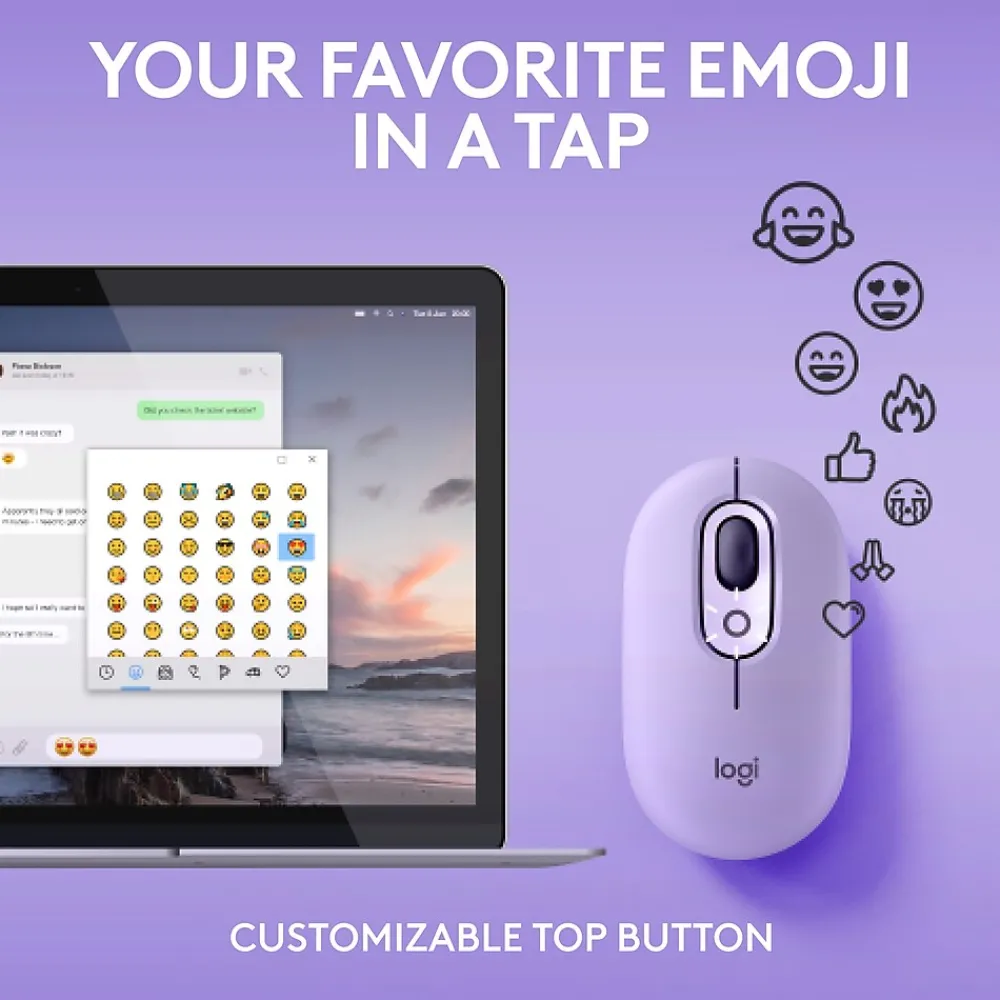 Get to know the playful, wireless POP Mouse, designed to make personality shine on your desktop and beyond. Pick the POP Mouse you love most from the range of designs, and make it your own with fun emoji customization. With SilentTouch clicks, and multiple months battery life, take it anywhere you go. Connect POP Mouse to your desktop, laptop, or tablet using Bluetooth on Windows, macOS, iPadOS and Chrome OS. Glide between up to 3 devices at a time with FLOW, and shift instantly from high-precision to speed scroll mode with the SmartWheel.