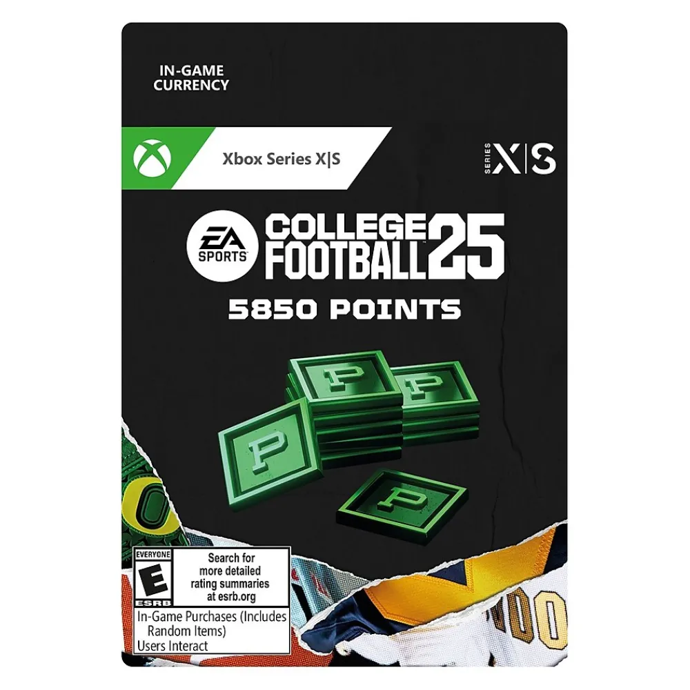 5,850 College Football Points to upgrade your Ultimate Team roster. Requires EA Sports College Football 25 (Sold Separately), All Game Updates, Internet Connection & An EA Account.
