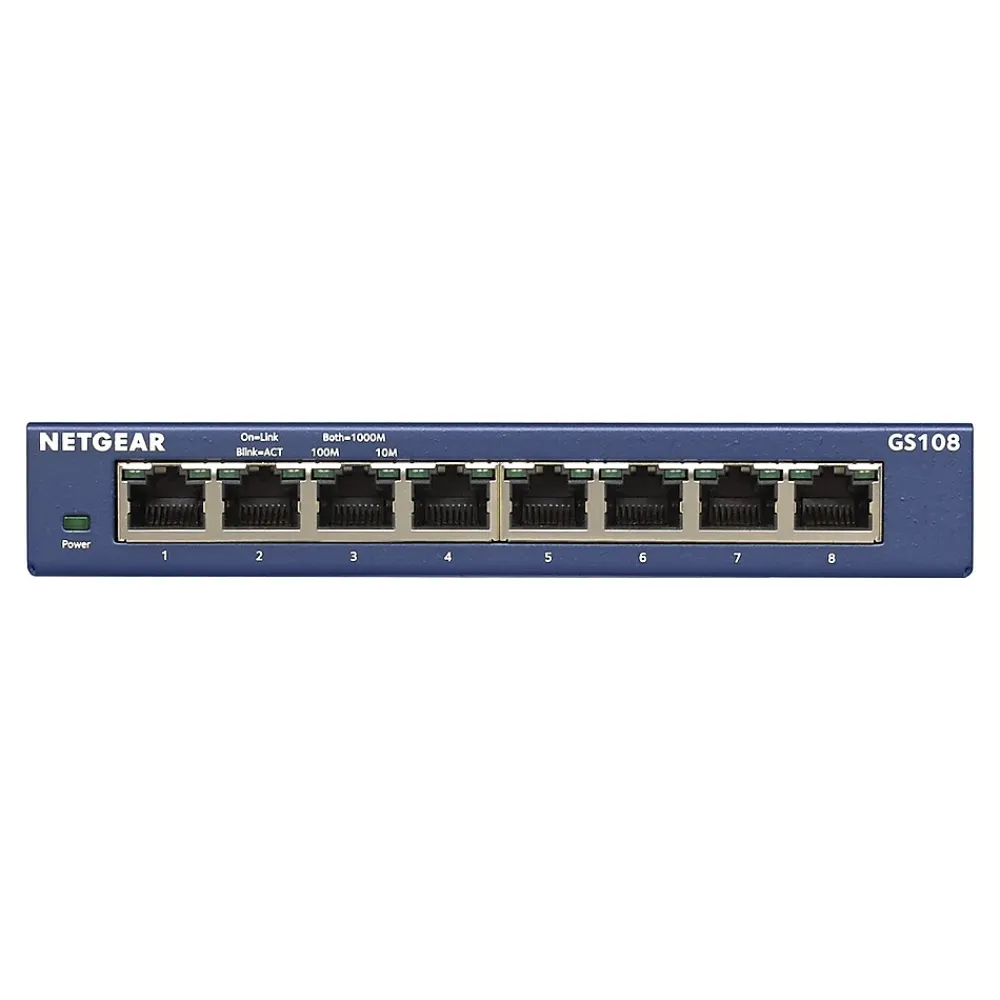 - The standards-based ProSAFE Gigabit switches senses and adjusts for network speed and cabling type automatically. Easily integrates into your existing Ethernet network – no matter if it is running at 10/100Mbps or Gigabit speed. Simple set up with no software or configuration needed. Front panel LEDs keep you informed of power status, link speed and link activities.