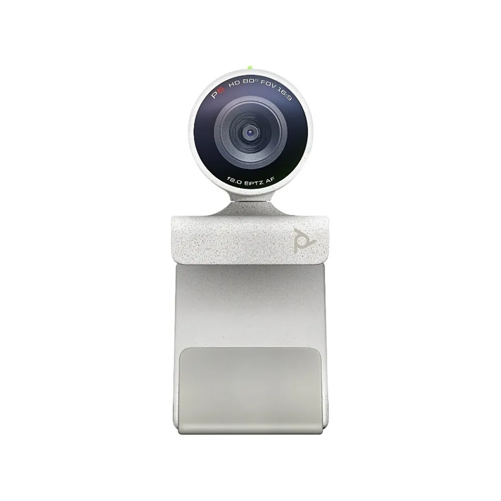 - Package Contents: Poly Studio P5 webcam, Removable monitor clamp, Setup sheet