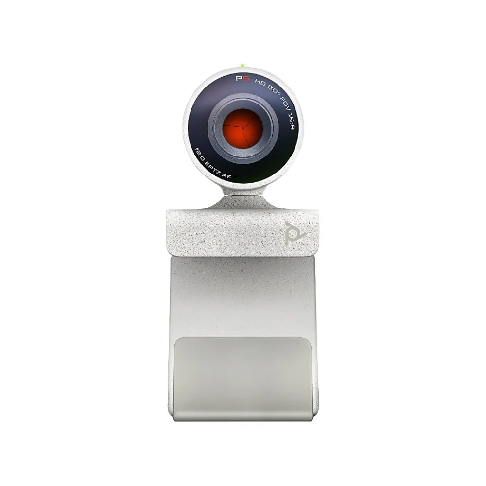 Do wonders for your professional image with the Poly Studio P5 webcam. Fine-tuned Poly optics make you look so good that you’ll own the conversation. All in a small, rugged webcam that’s super easy to set up and use. It’s even simple for IT to manage with Poly Lens. Automatic low-light compensation and brilliant colors make you look your best, without being left in the dark. The 1080p resolution with 4x digital zoom camera puts the focus on you, right where it belongs. The Poly Studio P5’s directional microphone clearly captures your voice while ignoring the distracting noise that interrupts your calls. For the best experience, pair it with a Poly headset or speakerphone so you’re ready to tackle your most critical conversations with confidence. Streamline your setup by using a Poly headset or speakerphone connected wirelessly to the Poly Studio P5 webcam. Just pop open the rear garage door, park your USB-A wireless adapter and presto! Your audio and video are ready to go.