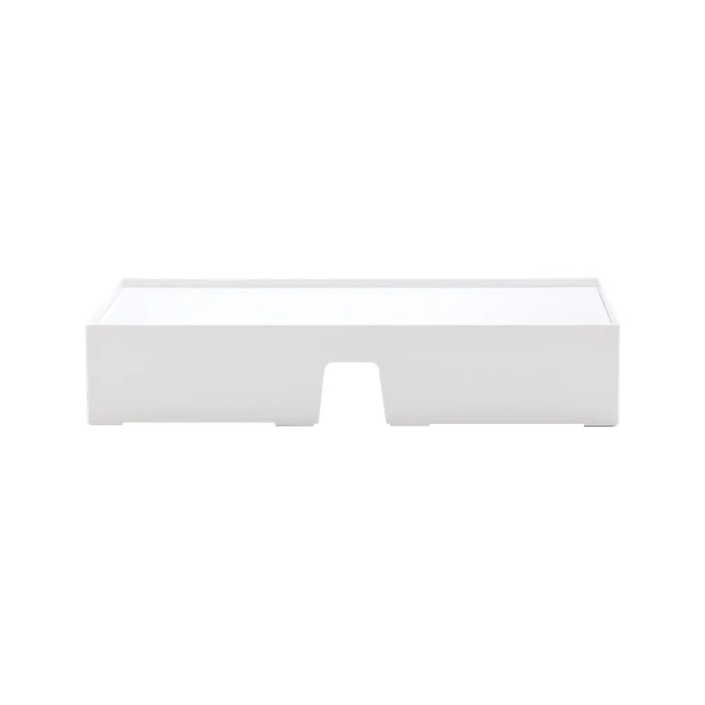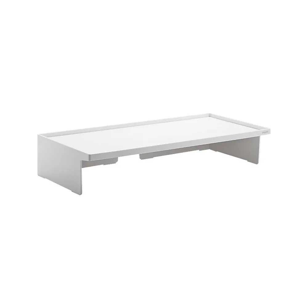 Stay comfortable while working with this monitor riser. The sturdy construction supports up to 60 pounds and raises monitors by 4.1 inches, ideal for improving the ergonomics of your workstation. An integrated cable cutout makes it easy to keep cords under control and reduce clutter, while the elevated surface increases available storage space. This Poppin white monitor riser has a lacquer-like finish that resists scratches and makes workstations look more professional.