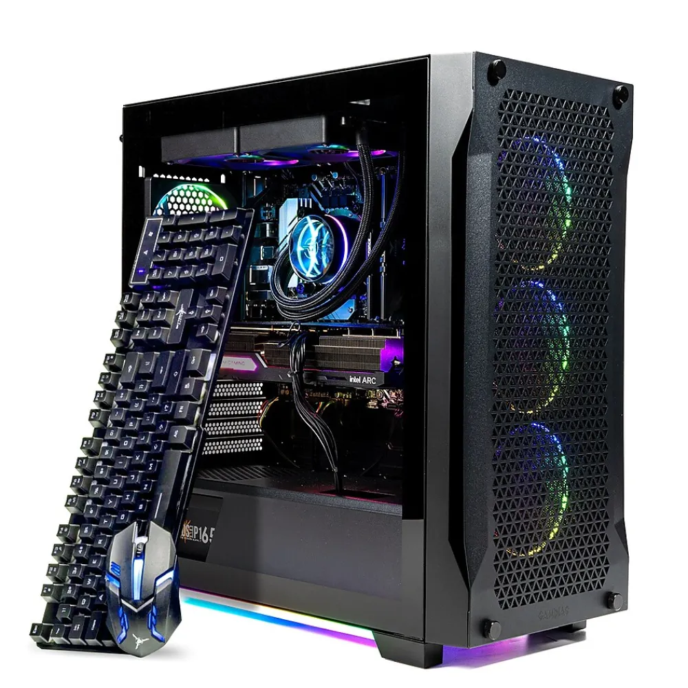 Start your gaming journey on a high note with the Skytech Maverick, a gaming desktop that offers both power and aesthetics for an immersive experience. With its Intel Core i5-13400F processor and Intel Arc A770 graphics card, this PC is ready to tackle the latest games with ease. From Skytech Gaming.