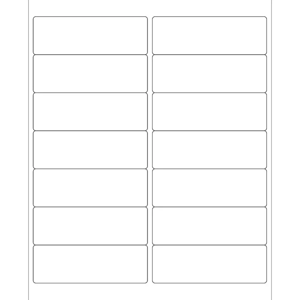 4″ x 1 1/3″ White Rectangle Laser Labels. Use to create your own product or mailing labels. Labels work with both Laser and ink jet printers. Permanent adhesive. Labels stick to a variety of smooth surfaces including paper, corrugated, plastic, wood, glass and metal.