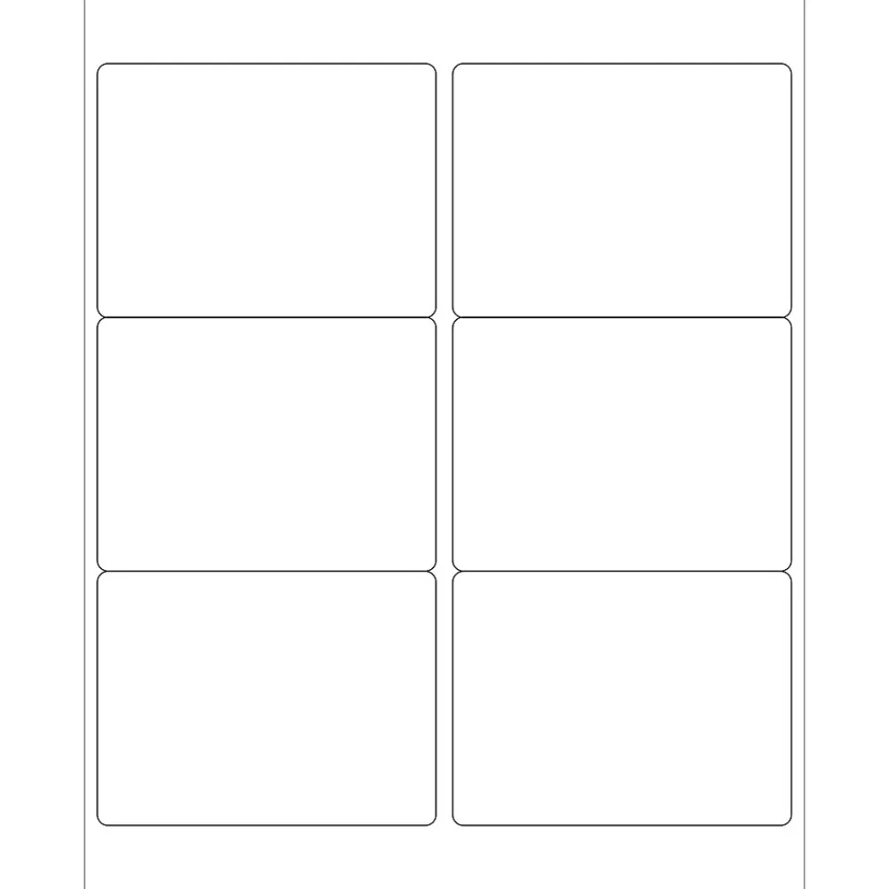 4″ x 3″ White Rectangle Laser Labels. Use to create your own product or mailing labels. Labels work with both Laser and ink jet printers. Permanent adhesive. Labels stick to a variety of smooth surfaces including paper, corrugated, plastic, wood, glass and metal.