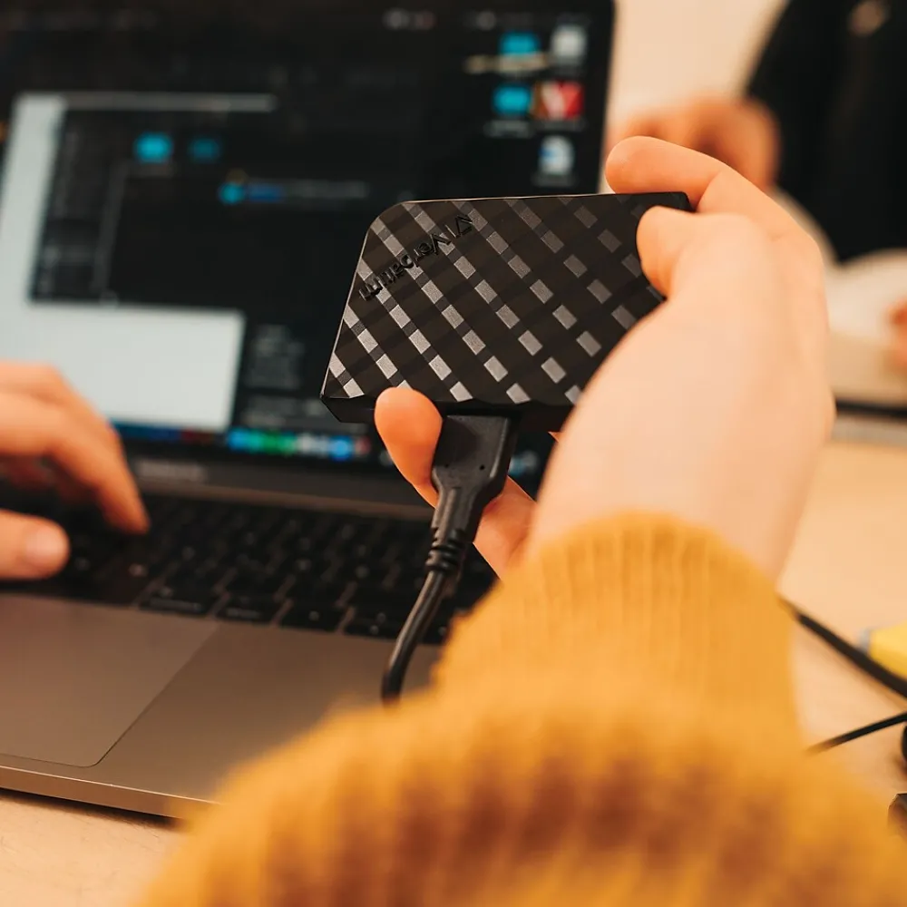 Providing a fast and safe solution for storing and backing up your file, this SSD is ultra small and lightweight, weighing less than a pound in a stylish black 3D design.Compatible with both PC and Mac operating systems, the SSD interface is USB 3.2 GEN 1* for super-fast data transfer speeds. The SSD handles large data transfers quickly – ideal for video editing, moving large amounts of data or maximizing gaming performance. The SSD includes a Micro-B to USB-A cable as well as a USB-A to USB-C adapter for connection to a range of devices. Nero Backup software is also available with this SSD, providing the ability to backing up files on a compatible PC**. Verbatim’s Store ‘n’ Go External SSDs are backed by a 2-year limited warranty.*For optimal performance, the drive must be connected to a USB 3.2 GEN 1 host controller **Actual transfer speeds depend on file size, computer performance, and operating system