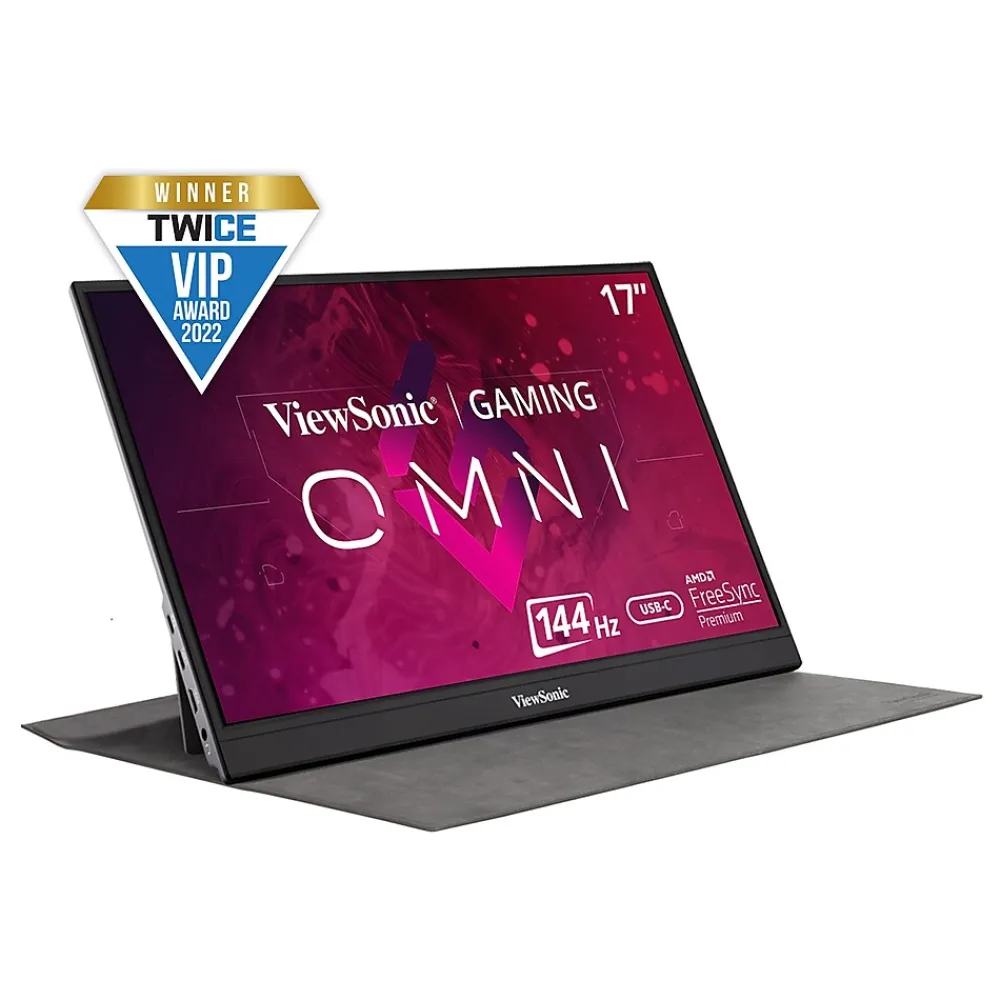 The ViewSonic VX1755 is a 17.2-Inch portable monitor designed for mobile PC and console gaming. With a bright and vibrant Full HD display, and a lightning-fast 144Hz refresh rate, this monitor delivers a powerful, desktop-level gaming experience within a portable package. Equipped with AMD FreeSync Premium technology, the VX1755 delivers seriously smooth gameplay for serious gamers. The VX1755 can also serve as a complementary screen to a laptop or tablet for boosted productivity. With an anti-glare screen and Full HD 1080p resolution, this monitor delivers a crystal-clear viewing experience so users can see more and play more. A USB Type-C port enables quick and easy transmission of video, and audio. A second USB Type-C port allows for power when using a console, or a port to connect the keyboard and mouse when on PC. Ultra-slim, compact and lightweight, the VX1755 perfectly fits into any bag, briefcase or backpack for gaming on the go.