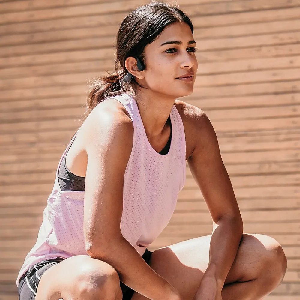 Redefine your possible with Shokz OpenRun bone conduction headphones! Formerly called Aeropex, these open ear headphones are designed for endurance athletes. Unlike traditional in-ear headphones, OpenRun features the signature Shokz open-ear design to keep you tuned in to your music and your outside moments. The enhanced audio on these wireless sport headphones features ensure clear sound, powerful volume, and a rich bass while you’re listening. OpenRun Bluetooth headphones are both lightweight and durable for comfortable all-day use. And they can also withstand the elements. Their IP67 waterproof rating makes OpenRun ideal for sweaty and rainy workouts, although they are not designed for underwater swimming. Embrace a new challenge with these Black sport headphones powered by Shokz.