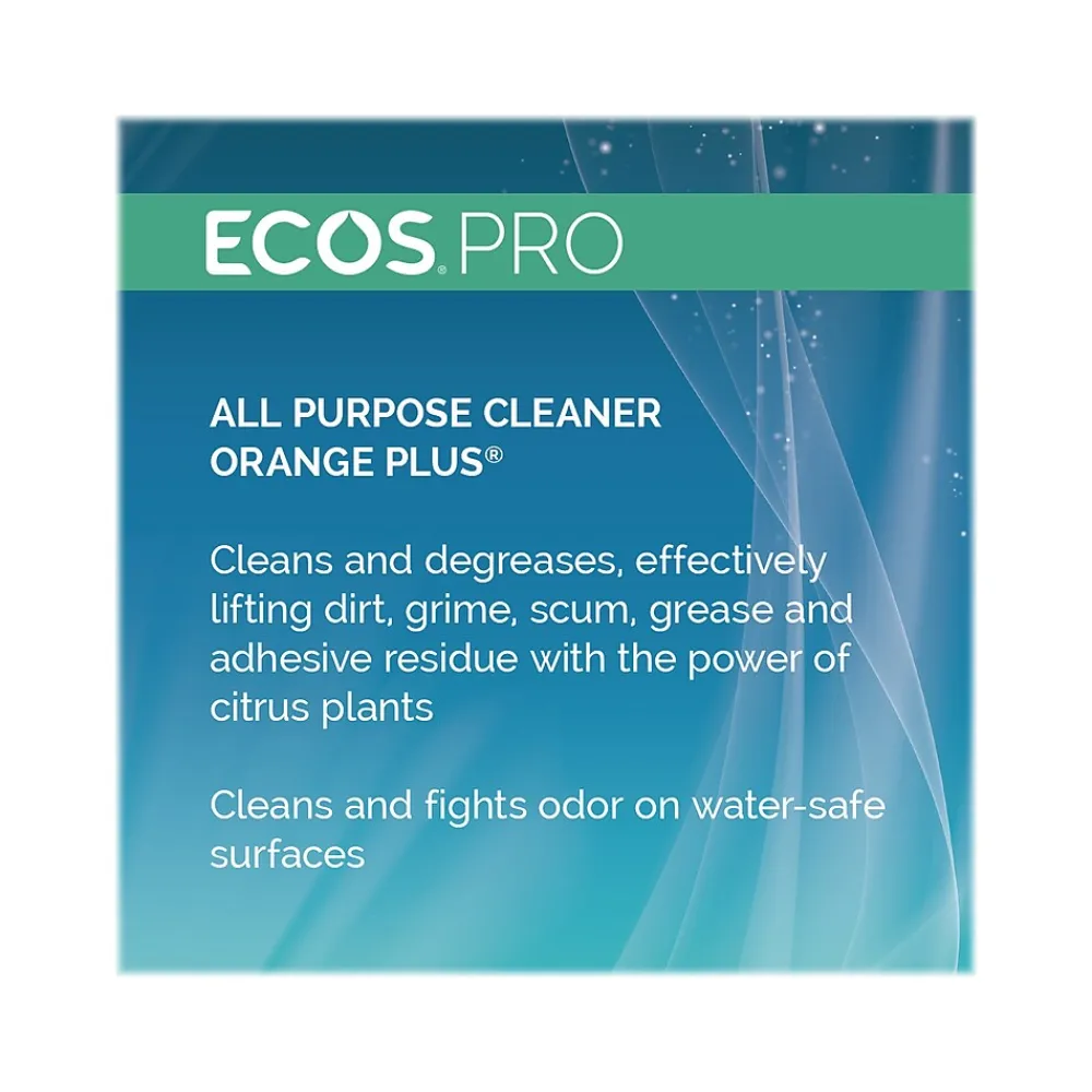 ECOS PRO Orange Plus is an all-purpose cleaner and degreaser that effectively lifts dirt, grime, scum, grease, and adhesive residue with the power of citrus plants. Use it to clean and fight odors on water-safe surfaces. This formula is made using sustainable, plant-powered ingredients. Made without dyes; gray water and septic safe. Features a refreshing citrus scent. Recognized by US EPA’s Safer Choice (DfE) and USDA’s BioPreferred program.