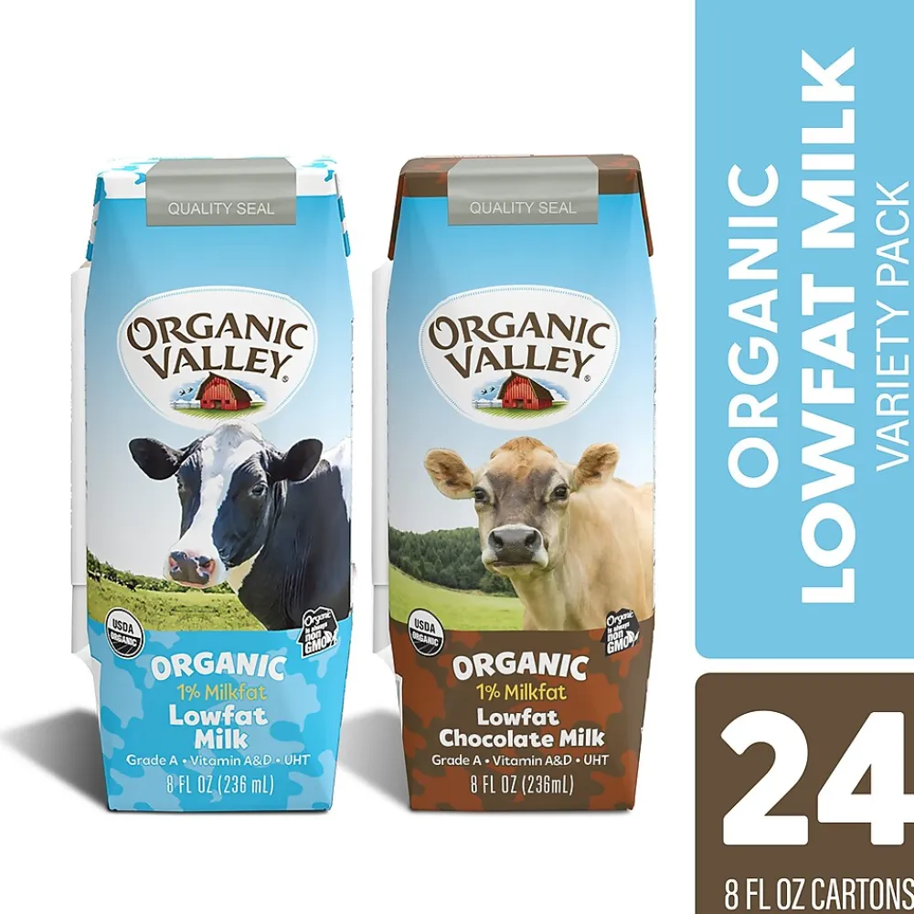 Organic Valley Aseptic Single Serve Milk Variety Pack, 8 Oz, 24 Ct