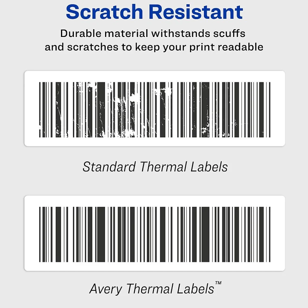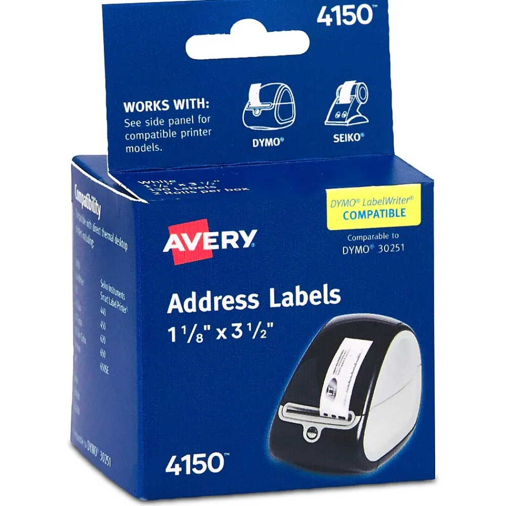 Avery 4150 direct thermal labels are designed to be compatible with a variety of thermal printers including the Seiko Smart Label Printer(R), DYMO LabelWriter(R) and Zebra(R) printers. Each durable roll is individually packed in a special bag designed to protect each roll from light and moisture. These multipurpose smudge-free labels are resistant to water, dirt, dust and grease. The adhesive helps labels stick and stay in place, making them perfect for a variety of applications. Great for barcode labels, shipping labels, food & beverage labels, inventory labels, ID labels and more.