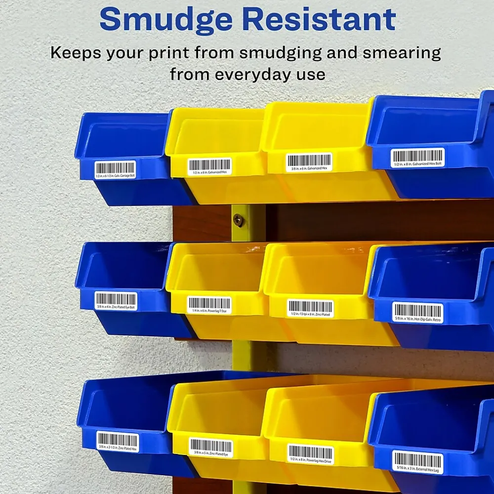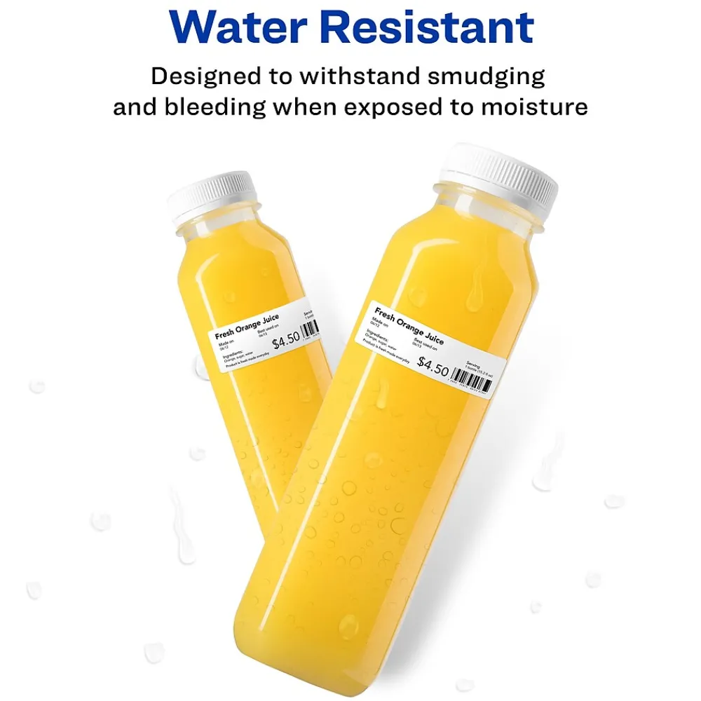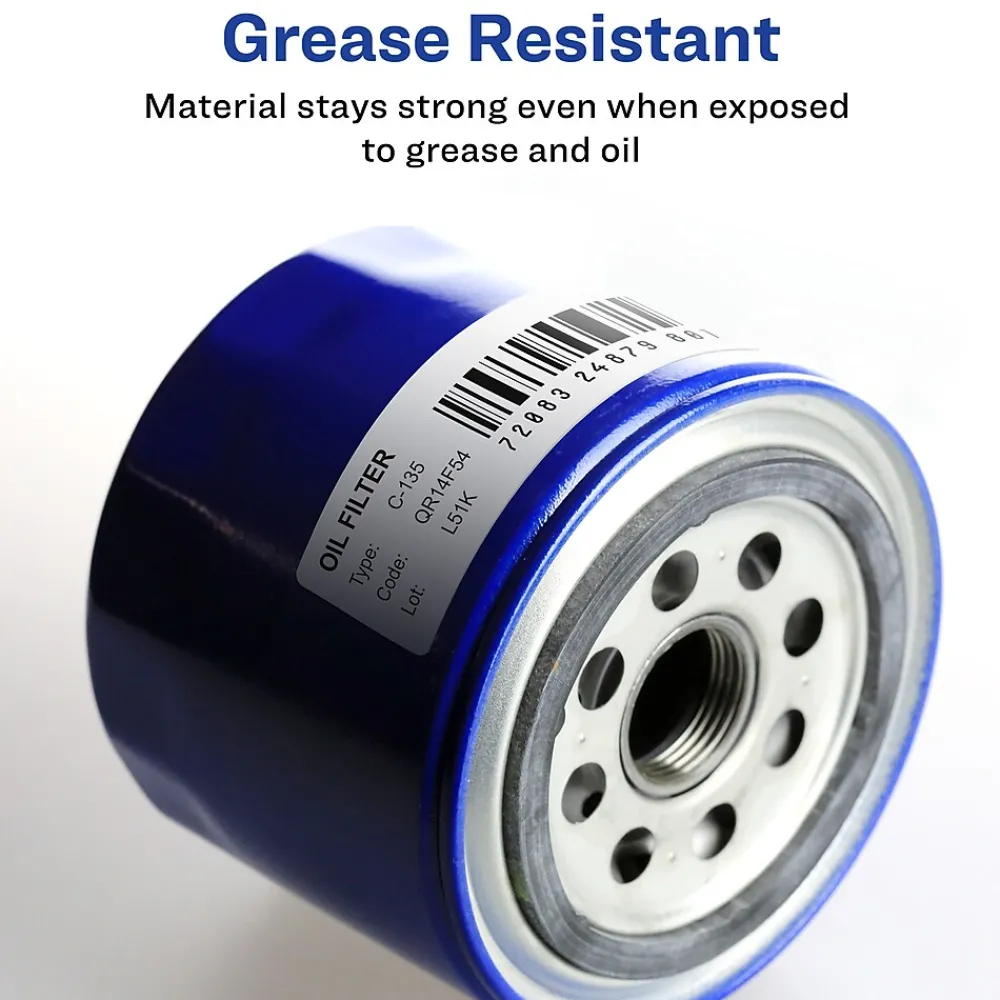 - Water resistant label material also resists scratches, smudges and grease staying legible through any labeling project