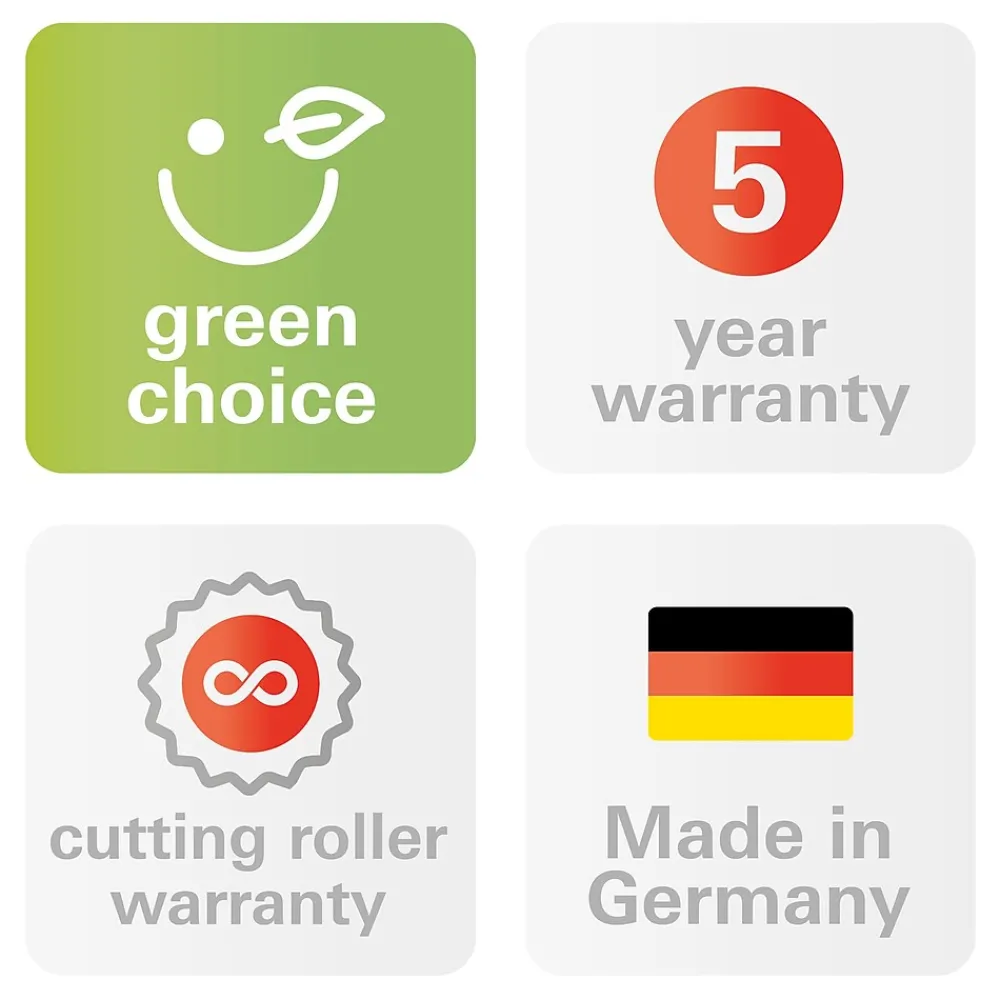 - Cutting rollers made of hardened solid steel with lifetime warranty
