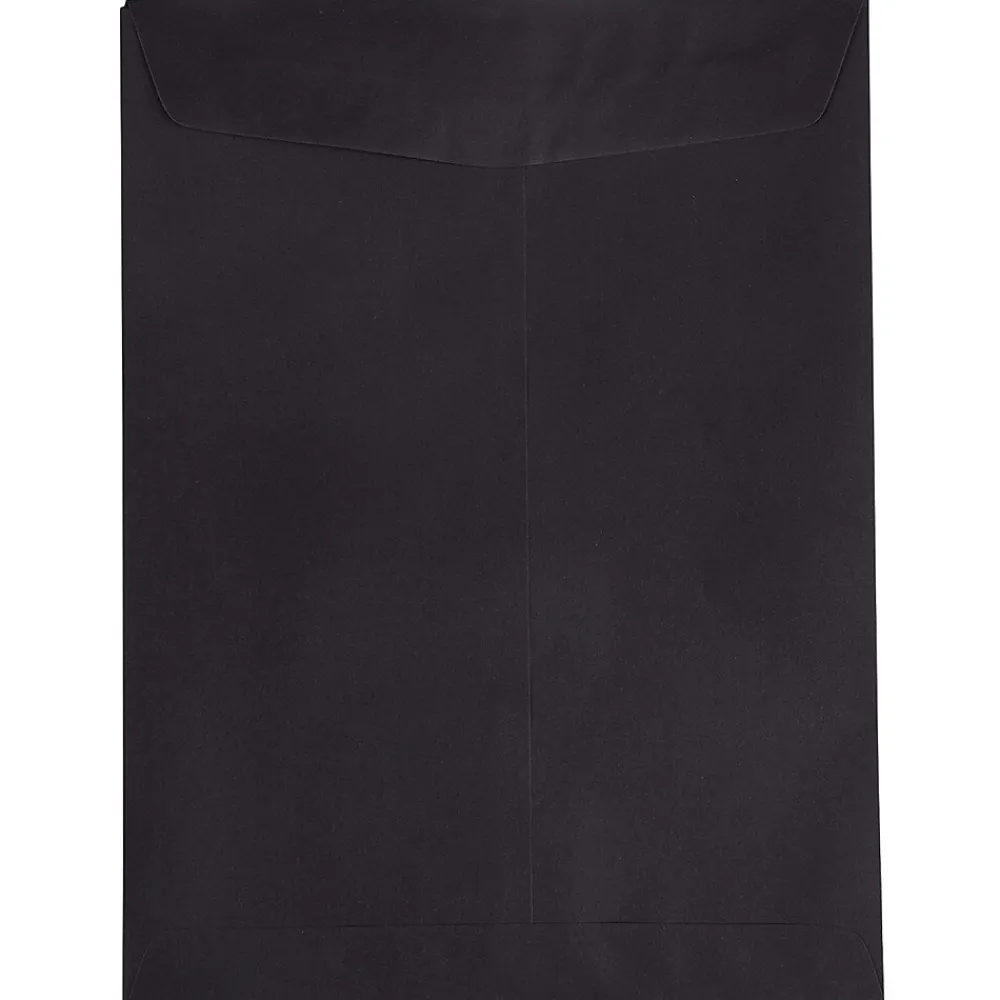 Bold Envelopes For A Powerful StatementGet the best open end envelopes made from the highest quality 24 lb. cardstock. JAM PaperĀ® Smooth Black Catalog Envelopes measure a professional 9 x 12 inches and have a strong, sturdy smooth finish. Every time you hold one of these fantastic mailers you will know your documents are secure within this thick, solid envelope. The privacy and security of your invoices, checks, cash, bills, and other important documents is extremely important. Our catalog envelopes have a straight flap and a gummed adhesive closure to make sure your documents are secure inside!DetailsSize: 9 x 12 inchesColor: Smooth BlackPaper Weight: 24 poundsQuantity: 50 Envelopes