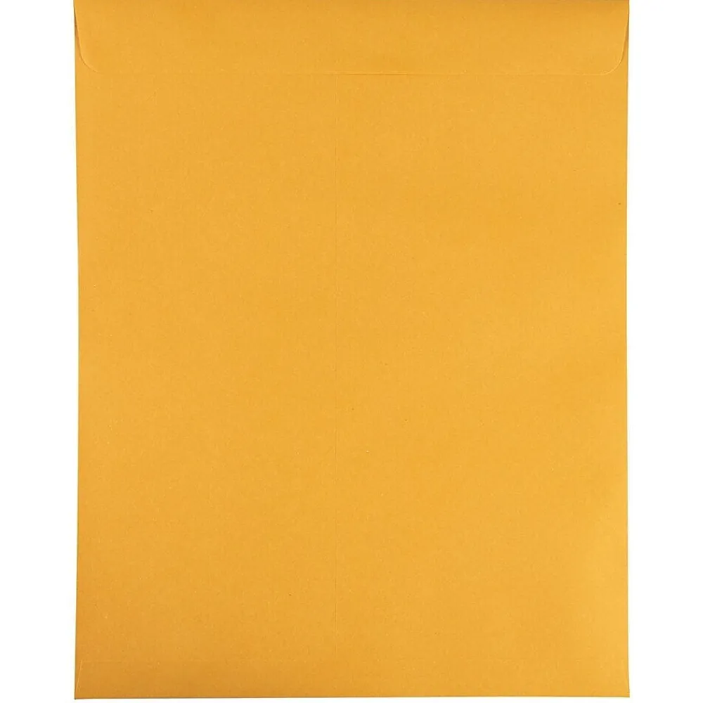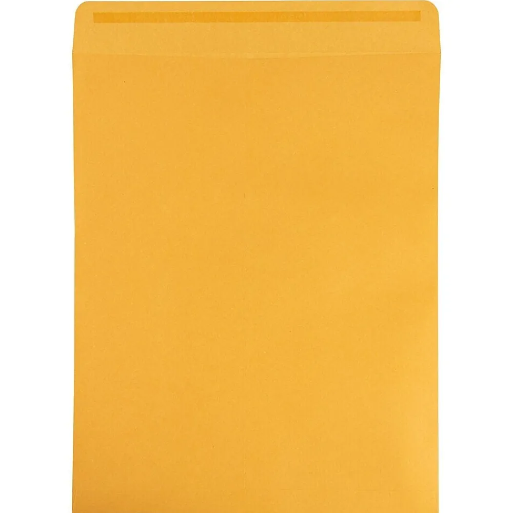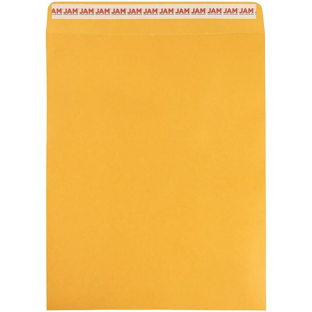 JAM Paper Brown Kraft Envelopes with Peel & Seal Closures measure 11.5 x 14.5 inches in size and are made out of smooth, high quality manila paper. Each one of these envelopes opens on the shorter end and features a reliable, easy-to-use, self adhesive peel-and-seal closure to keep the contents placed within secure as they are transported through the mail. A fantastic option for a large number of home and office mailing purposes, these envelopes feature a light yellow-brown kraft color. There size makes them great for mailing standard sized and legal sized documents with no need for folding and creating creases. They can also be used to mail small items, photographs, catalogues, small clothing articles, donations, promotional materials, and much more! This box contains an even total of 50 envelopes.Size: 11.5 in x 14.5 in | Color: Brown Kraft | Quantity: 50