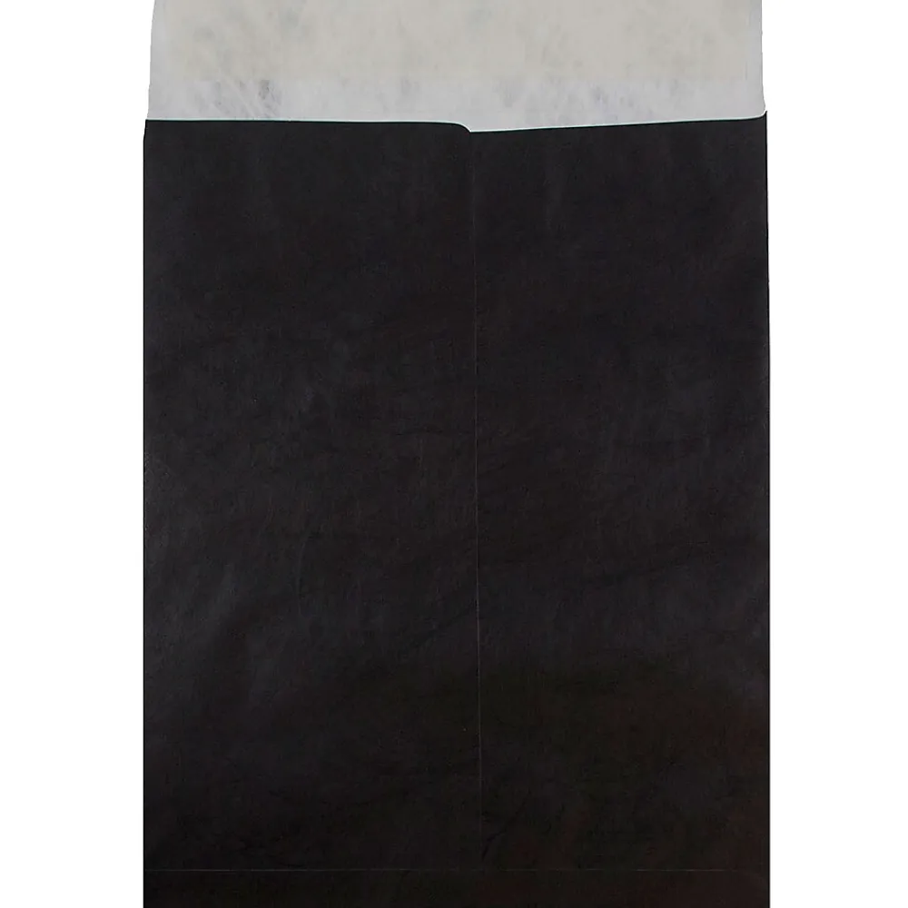 Ditch the basic white envelope and use JAM Paper® Heavy Duty Tyvek® Open End Catalog Envelopes instead! Both you and recipientsto deliver your mail in style. Recipients will be impressed when they receive this black envelope in the mail and find that the contents are in perfect condition. Water and tear-resistant, spills and wet weather won’t be able to damage your artwork, magazines, or brochures. This pack contains 25 black Tyvek® envelopes. Each envelope measures 11 1/2″ x 14 1/2″, has an open end opening (no clasp, gummed), straight flap, self adhesive strip closure, is made from 28 lb. paper, is 10% recycled, and has a smooth finish.