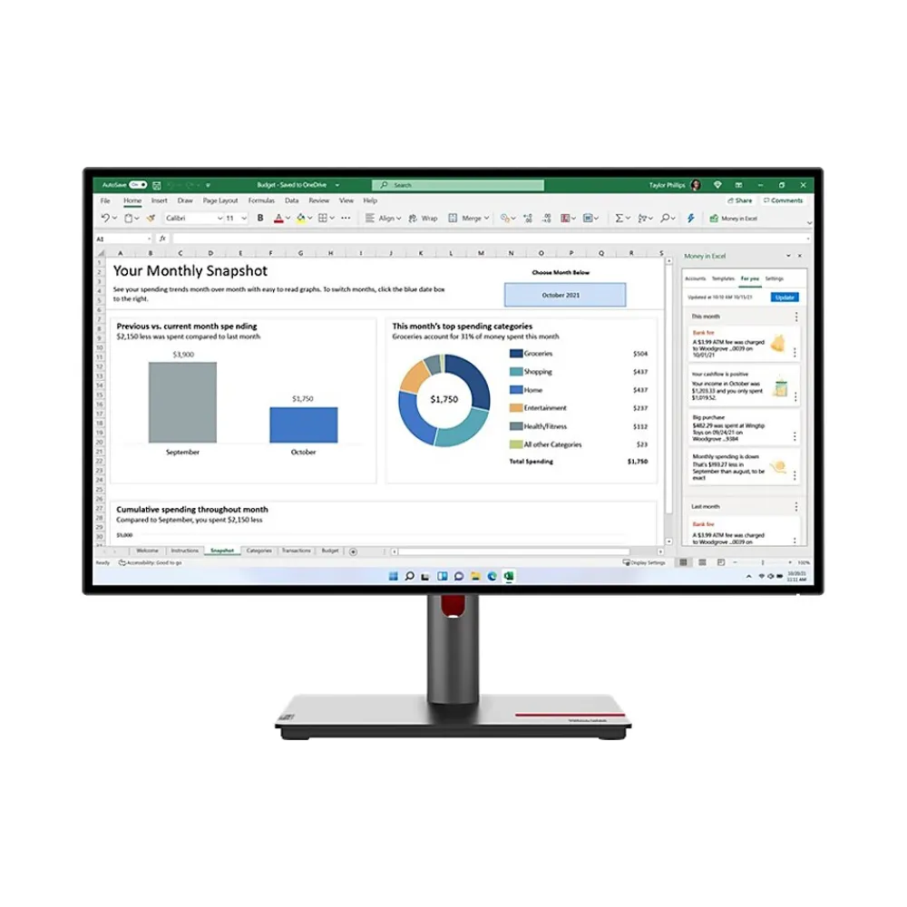 - Ergonomic stand with tilt, lift, pivot, and swivel function lets you adjust the monitor to a height and angle that are most comfortable to work at for long durations