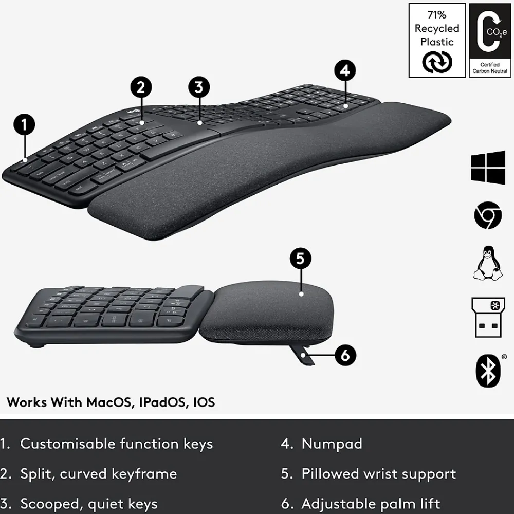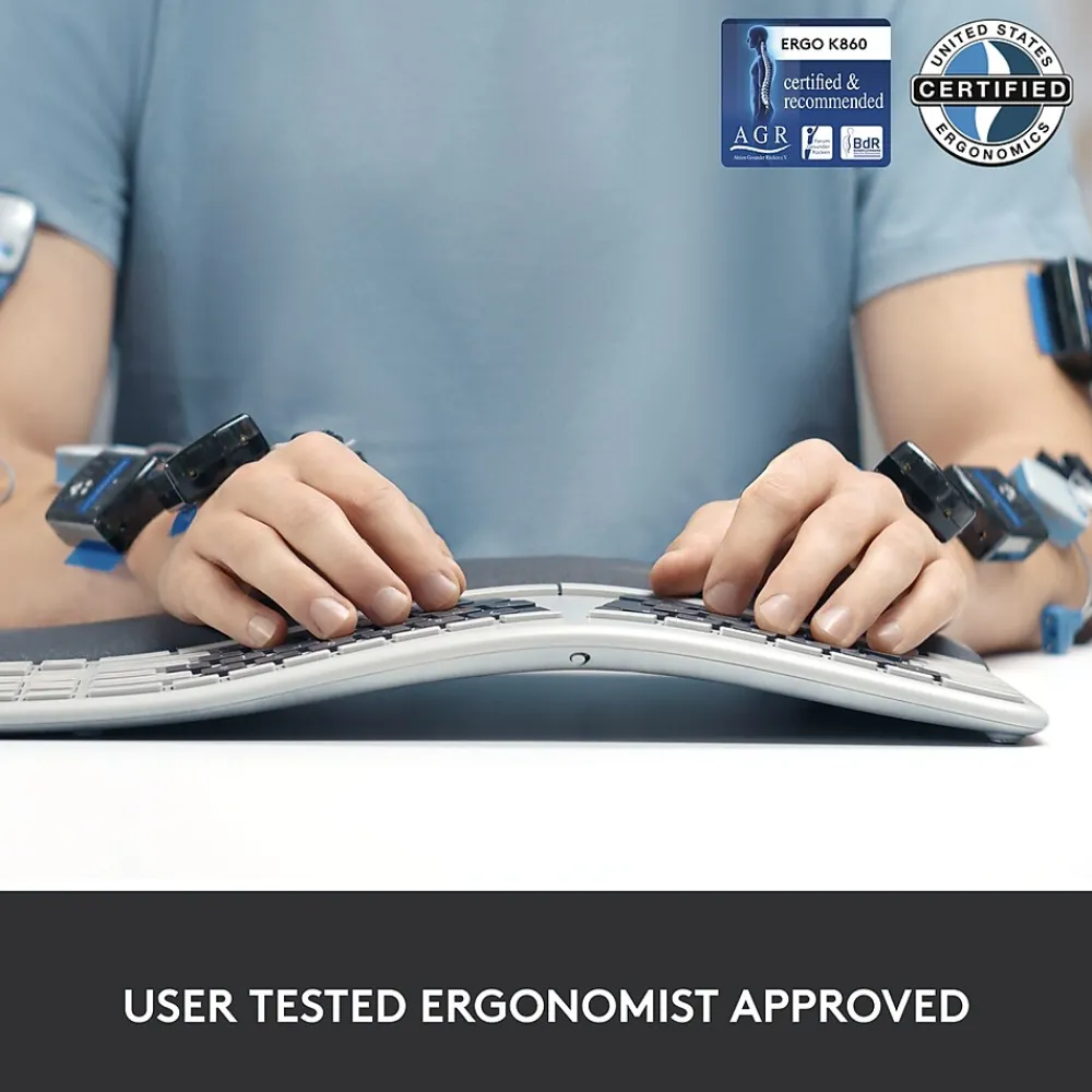 - Ergonomist Approved: The ERGO K860 wireless ergonomic keyboard is certified by United States Ergonomics to improve posture and lower muscle strain