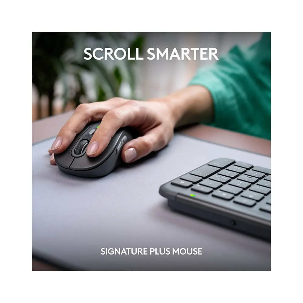 Type and click across computers effortlessly with the Logitech Signature slim keyboard and MK955 mouse made of recycled plastic. Make work-life magic with customization and shortcuts that keep you in control. Enjoy fast, precise scrolling and a familiar laptop-style keyboard feel that allows you to work even smarter with the Logi Options+ app’s custom shortcuts. Quiet typing and clicking gives you more focus and less disturbance to others. Connect wirelessly with Bluetooth or the included Logi Bolt USB receiver, and stay concentrated for longer with up to 36 months of battery life for the keyboard and 24 months for the mouse.