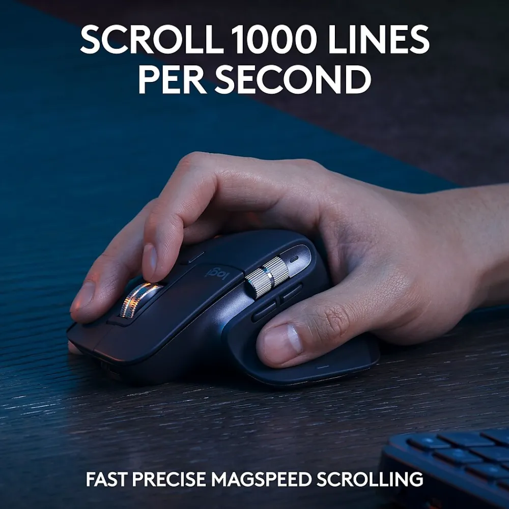 - WITH MAGSPEED, Logitech’s fastest and most precise scroll wheel, and an 8K dpi sensor, this mouse tracks anywhere, even on glass