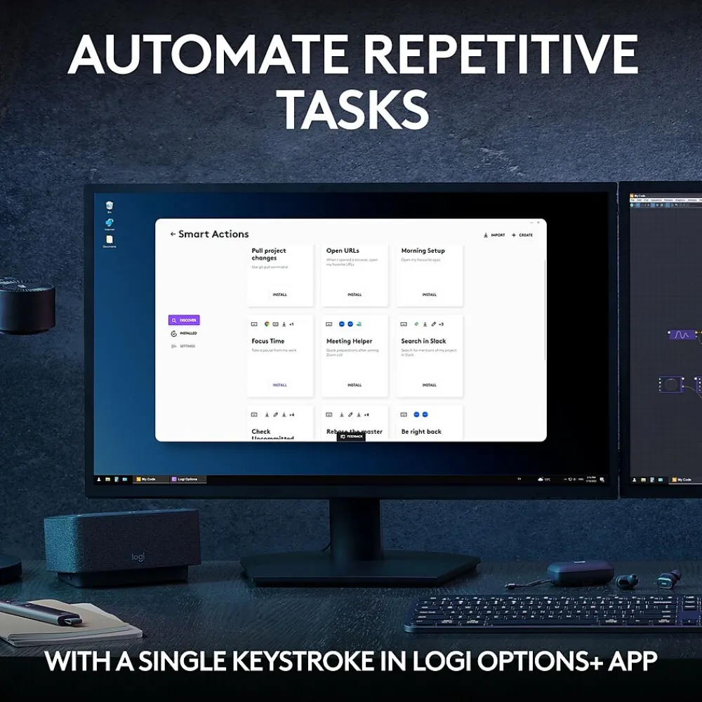 - EASILY CREATE AND SHARE time-saving Smart Actions shortcuts that perform multiple actions with a single keystroke with the Logi Options+ app