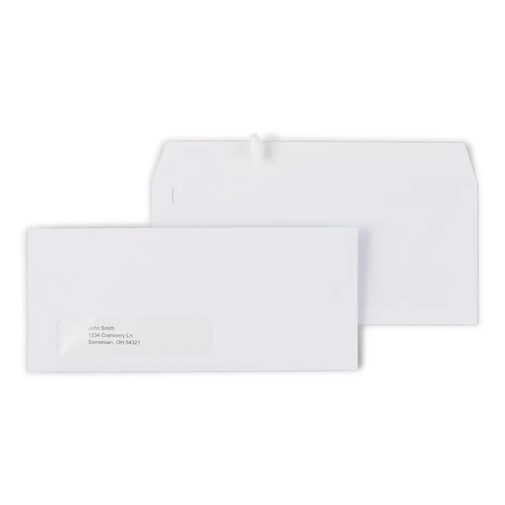 Make shipping addresses easy to read with these EasyClose left-window #10 envelopes. Each one has a transparent window to save you the hassle of applying shipping labels to the outside, while the QuickStrip offers quick, simple and mess-free sealing. These Staples EasyClose white envelopes come in a pack of 500, letting you stock up the office supply cabinet.