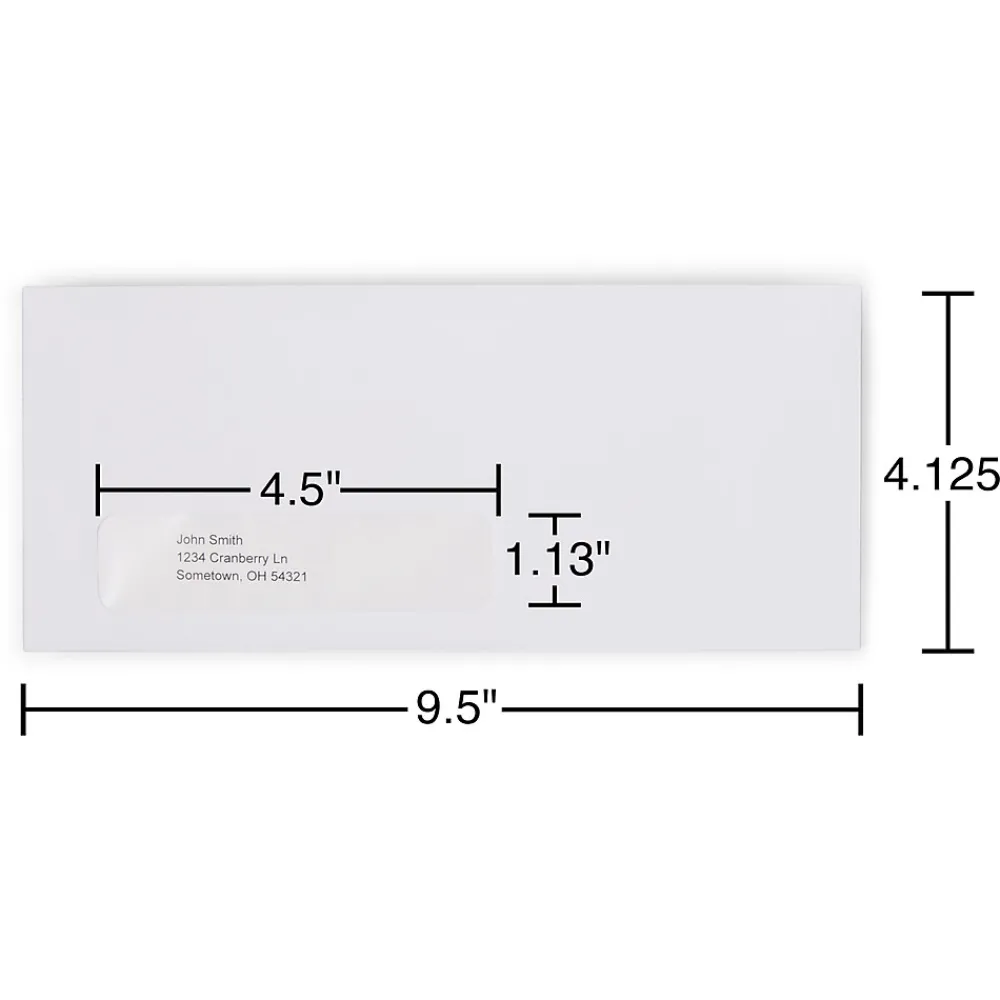 - These envelopes measure 4 1/8″ x 9 1/2″ in size, providing enough space for your mail