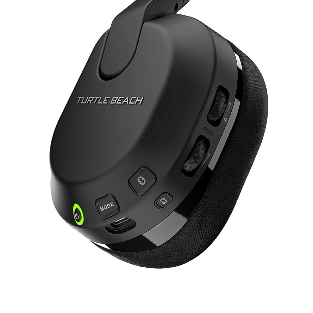 The Turtle Beach® Stealth™ 600 wireless multiplatform gaming headset for Xbox Series X|S & Xbox One, PS5™ & PS4™, Windows PCs, Nintendo Switch™, Steam Deck™, and mobile is refreshed and powered up for a third generation of gaming domination. With a history atop the wireless console headset charts, the Stealth™ 600 enters its 3rd generation, but is just getting started. Experience low-latency wireless connectivity on any console & PC, plus built-in Bluetooth® lets you connect directly to mobile devices. Plus, switching between 2.4GHz wireless and Bluetooth® connections is made easy using the QuickSwitch button located conveniently on the headset. Be unstoppable with a best-in-class, 80-hour battery life featuring quick charge so you can get back in the game right away. Completely redesigned for the third generation of the Stealth 600, the all-new uni-directional, flip-to-mute microphone features A.I. noise reduction to ensure ultra-clear mic quality with the quietest background possible. Using the Swarm™ II desktop software for PC, or mobile app for iOS & Android devices, you can adjust noise gate, sensitivity, monitoring levels, and choose from four different mic presets, or even make your own with a custom 10-band microphone EQ. Clear comms are nothing if you can’t hear every vital game detail, so the Stealth™ 600 is packed with the legendary 50mm Nanoclear™ drivers for precise, immersive spatial audio quality. And with the Swarm™ II app, you can cycle through four audio EQ presets, create up to five custom presets with a 10-band EQ, adjust game & chat volume mix, plus activate, or adjust Turtle Beach® exclusive Superhuman Hearing® sound setting. Play for hours in total comfort with a pressure-relieving, ultra-comfortable design. Memory foam ear cushions wrapped in athletic-weave fabric keep your ears cool and cozy over extended game sessions. Plus, the cushions feature ProSpecs™ glasses relief technology, so whether you wear gaming or prescription glasses, you’ll enjoy the same great comfort. For added customization, you can remap the secondary wheel & mode button on the headset to distinct functions to better suit your gameplay. And the Stealth 600 is built for long-lasting, comfortable use with an adjustable, lay-flat design.