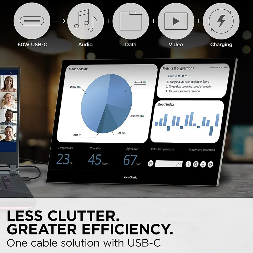 - LESS CABLE CLUTTER: USB-C connectivity for fast data, audio and video transfer, and 2 way powered 60W USB C charging.
