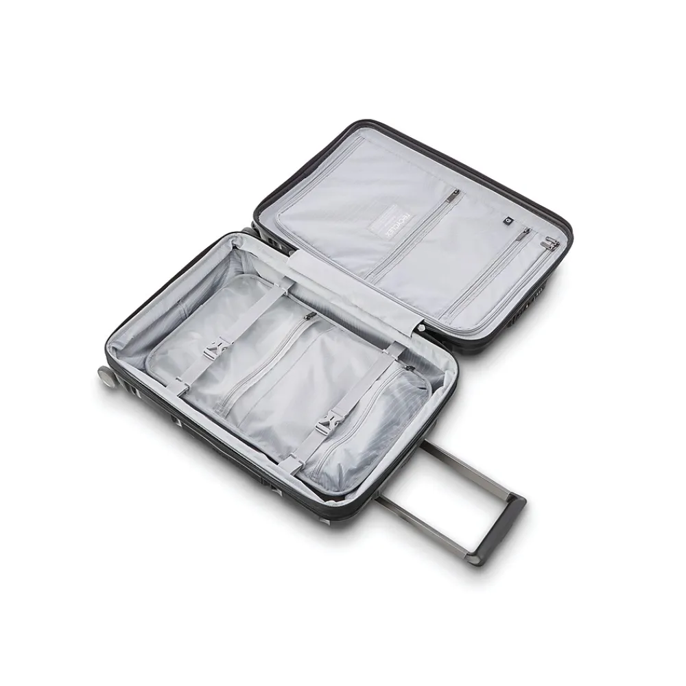 Samsonite’s iconic Outline Pro polypropylene collection takes you confidently in the direction of your destination thanks to its elevated design and eye-catching color options. This smart and sleek piece is all systems go while pulling out all the stops: from its molded trolley handle to easy-lift top and side grips, major touchpoints are treated with Samsonite Antimicrobial Handle (Sam-AMH) technology to help keep the handle’s surface clean. With integrated extras such as a built-in TSA lock and highly adaptable interior lined in eco-conscious Recyclex fabric, this all-time travel essential bridges form and function flawlessly.