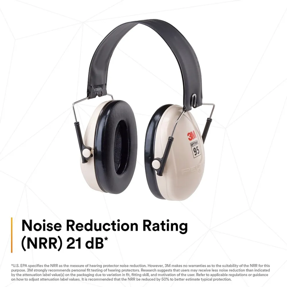 For noise levels up to 95 dBA. This over-the-head, folding earmuff features a stainless steel headband for consistent force and effective hearing protection. Ultra light with liquid/foam filled earmuff cushions. Color-coding for compliance sighting. Noise Reduction Rating (NRR)*: 21 db. CSA Class B. *The NRR may overestimate the hearing protection provided during typical use. 3M recommends reducing the NRR by 50% for estimating the amount of noise reduction provided. 3M is Leading the Advancement of Hearing Conservation.