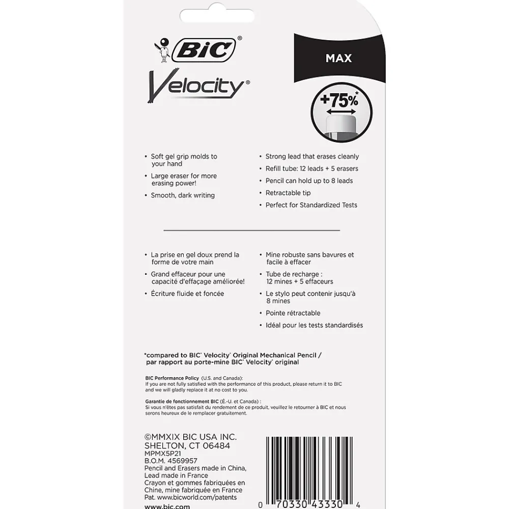 The BIC® Velocity® Max Mechanical Pencil, 0.5 mm features a large eraser for more erasing power!