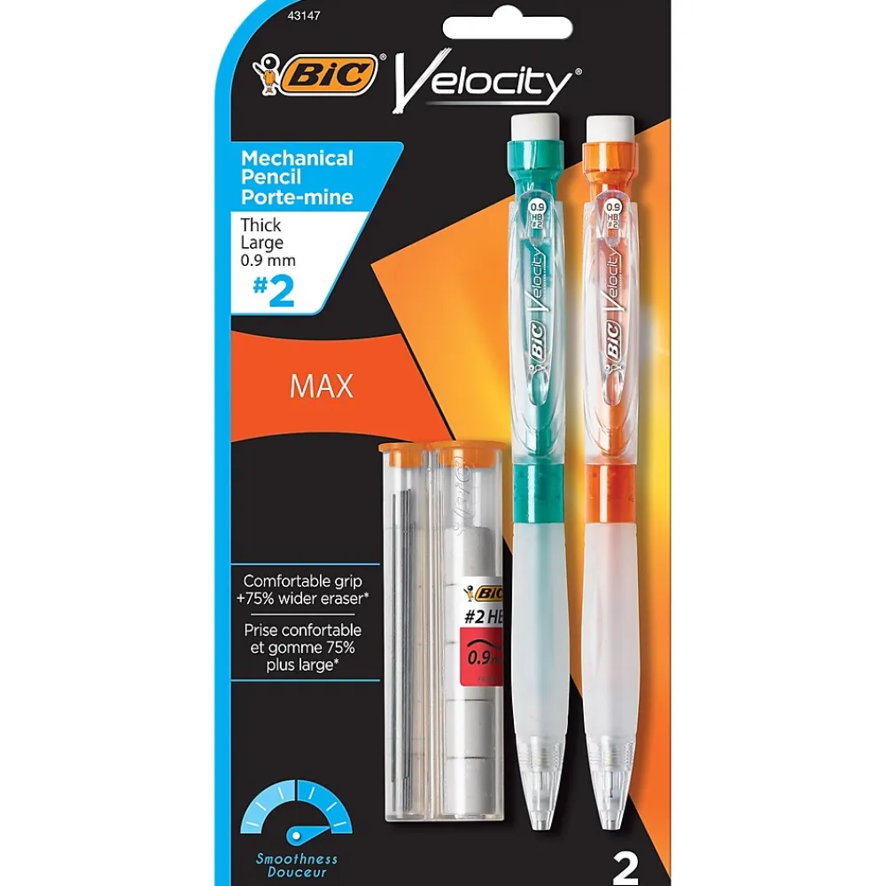 - One 2-count pack of BIC Velocity Max Mechanical Pencil, Medium Point (0.9mm), Black