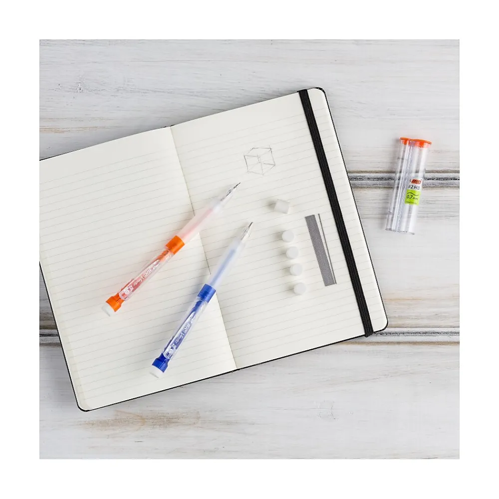 BIC Velocity Max mechanical pencils have 0.9 mm thick retractable and replaceable leads that offer bold, dark lines for easy-to-read writing. An eraser that’s 75-percent wider than the BIC Velocity Original mechanical pencil ensures that any errors are easily erased, leaving clean, smudge-free documents. A comfortable soft gel grip and a lightweight barrel contours to your unique grip while reducing writing fatigue. With two mechanical pencils and additional replacement leads and erasers, this pack of mechanical pencils provides a sufficient supply while eliminating waste.