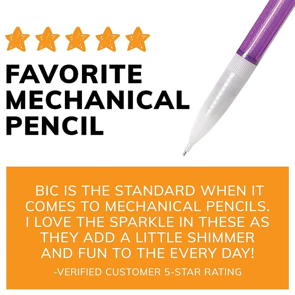 - Cute BIC mechanical school pencils for girls, boys and adults, featuring colorful barrels with eye-catching sparkles