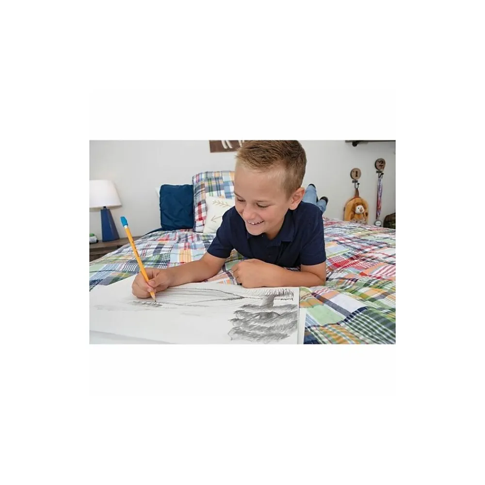 Take notes or create sketched pictures with this pack of 144 soft No. 2 pencils. The commercial-grade wooden case delivers durability to the design, and the bonded lead prevents the tip from breaking in the middle of a sentence. These Dixon wooden soft pencils come in a pack of 144 to ensure you always have extras on hand.