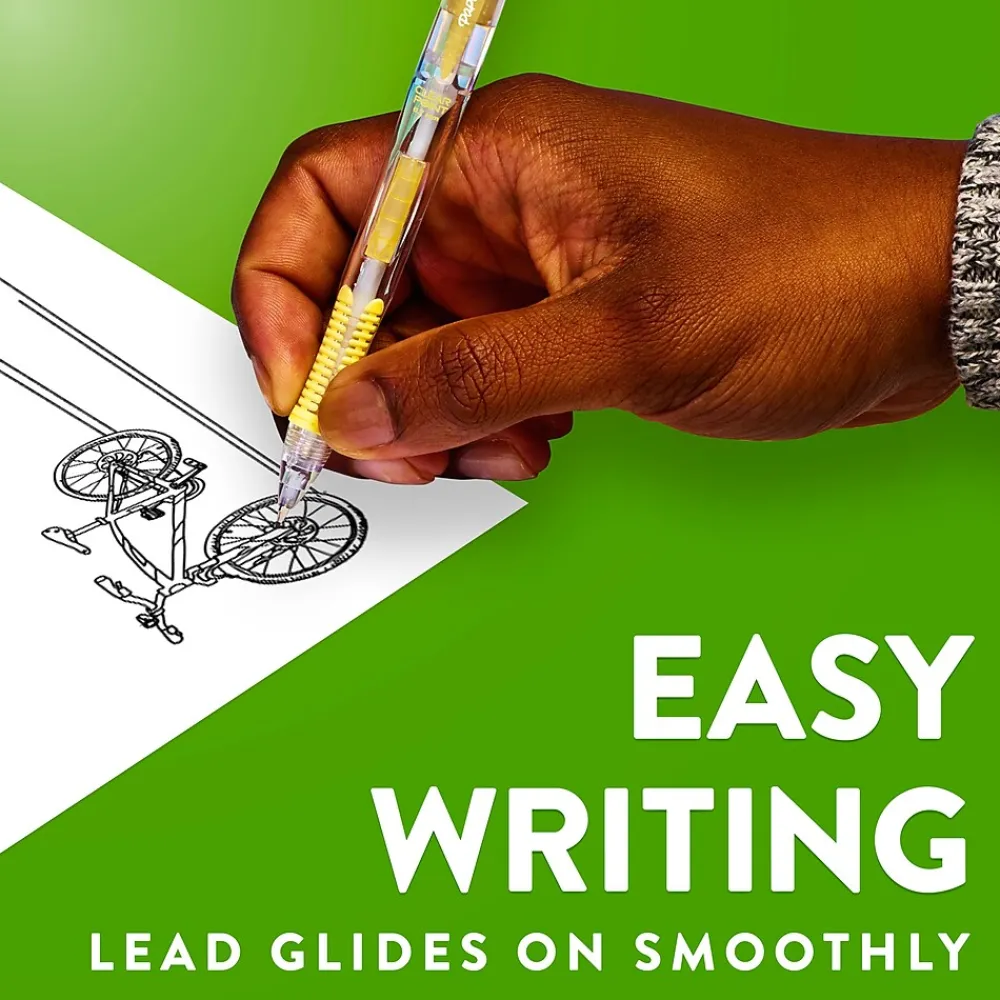 Paper Mate Clearpoint mechanical pencils have the feel of a pen and the look and performance of a pencil. These pencils feature bright, colorful barrels that create a fun writing experience. With a convenient side-click advance mechanism on the barrel, you’ll be able to load lead without losing your grasp.