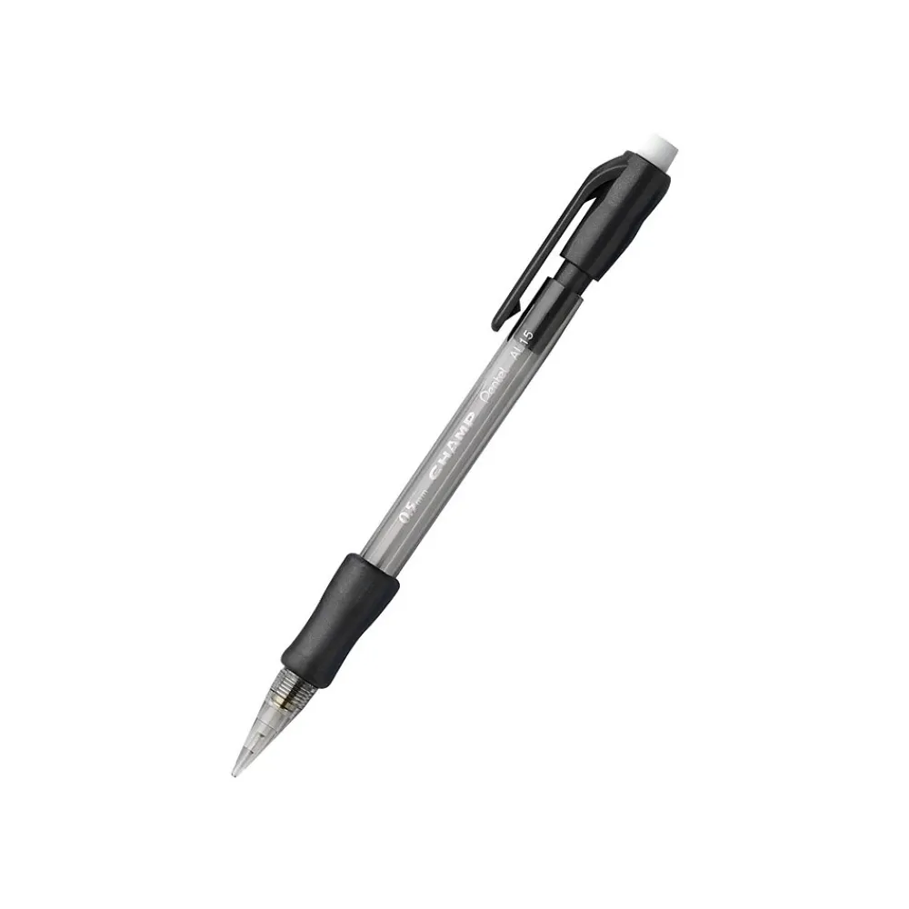 Write lengthy assignments, sketches, and other papers by using these black-barrel medium pencils. Featuring a soft latex-free Comfort Zone grip, these Pentel Champ automatic No. 2 pencils provide enhanced comfort and control while writing, and the 0.5mm lead offers precise fine strokes.