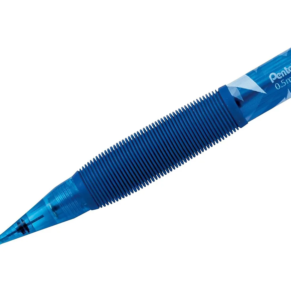 Monitor lead supply while writing with these transparent blue-barrel mechanical pencils. With a latex-free grip and an ergonomic barrel, these Pentel Icy mechanical pencils let you write comfortably while working on homework, paper corrections, or other projects.
