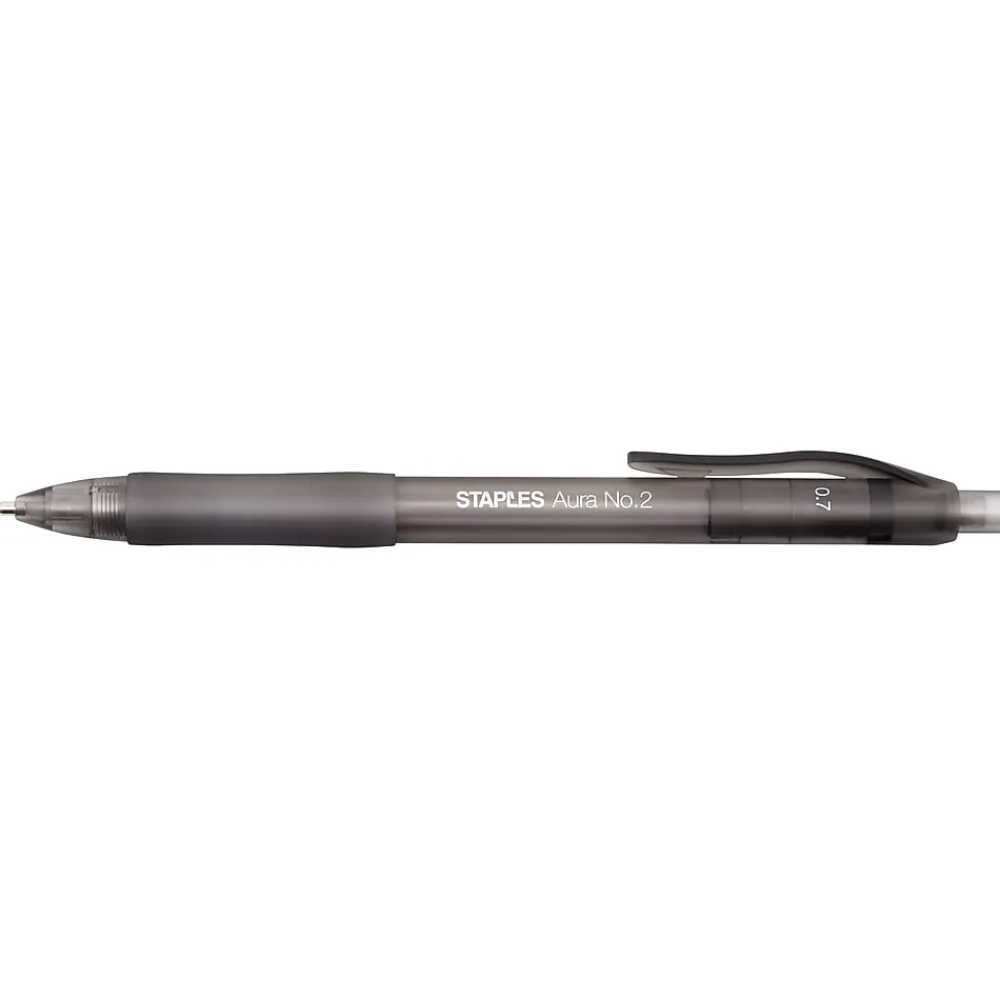 Our Aura mechanical pencil with rubberized comfort grip is filled with no. 2 lead for reusability. This 0.7mm pencil is manufactured from high-quality materials for durability.
