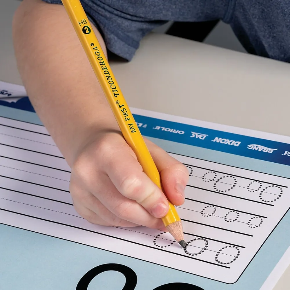Enjoy premium performance with these pencils that have a comfortable grip and a latex-free eraser for easy editing. The My First Ticonderoga yellow #2 soft pencils are made with high-quality wood and a smooth graphite core.