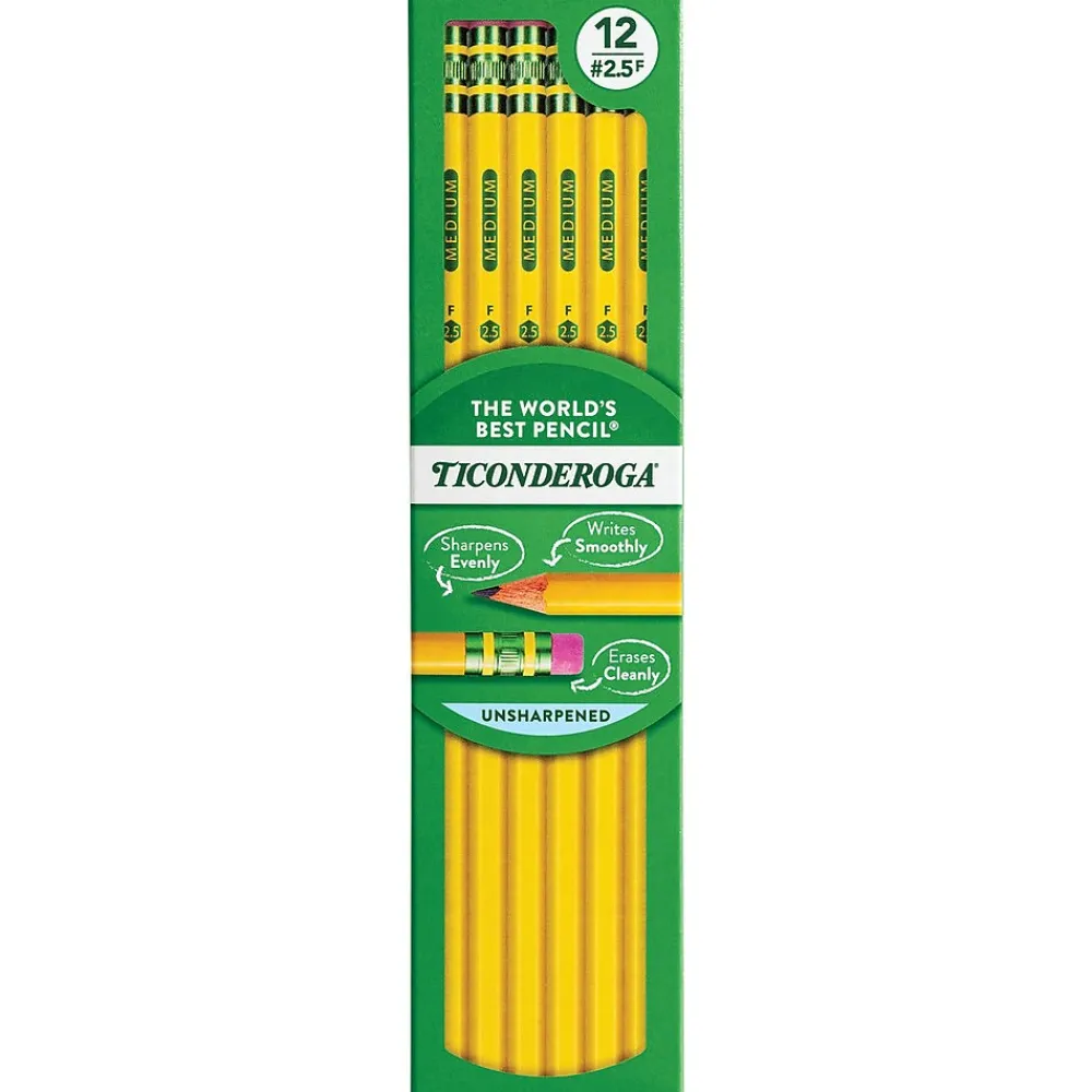 Write papers with these wood-cased pencils. Each pencil has a latex-free eraser that cleans mistakes without making a mess, while the premium wood case allows for a comfortable grip and easy sharpening. These Ticonderoga yellow-barrel wood-cased pencils are PMA-certified nontoxic.