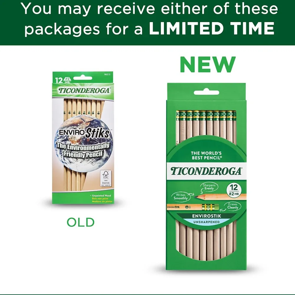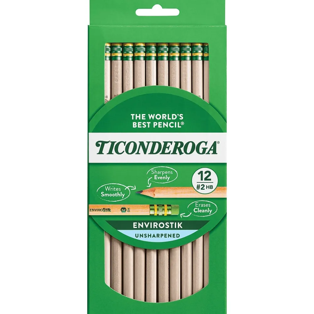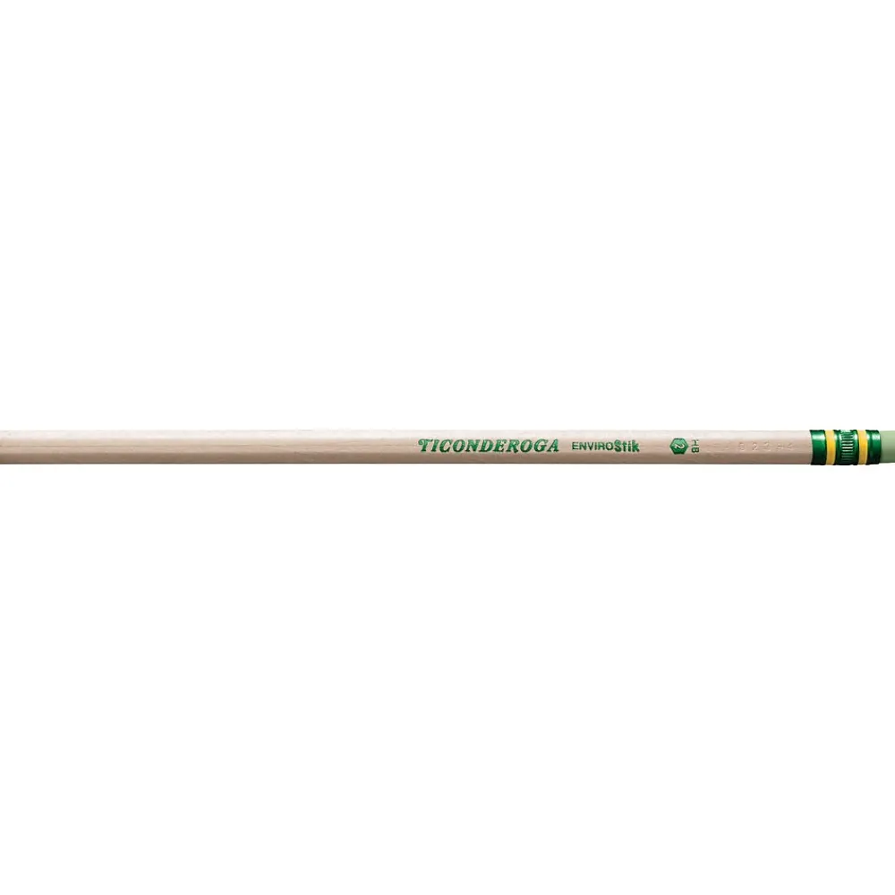 Ticonderoga® Woodcase pencil is made from reforested natural wood imprinted with certified non-toxic inks. Pencil has graphite core formula that provides extra smooth writing performance and has latex-free soft rubber for smudge-free corrections.