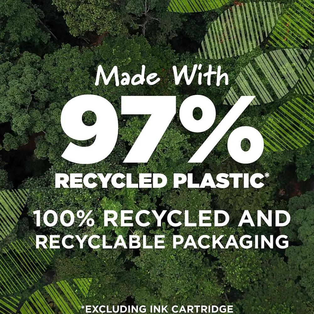 - Each pen is made from 97% recycled plastic excluding ink cartridge and the paperboard packaging is made of 100% recycled content and is recyclable