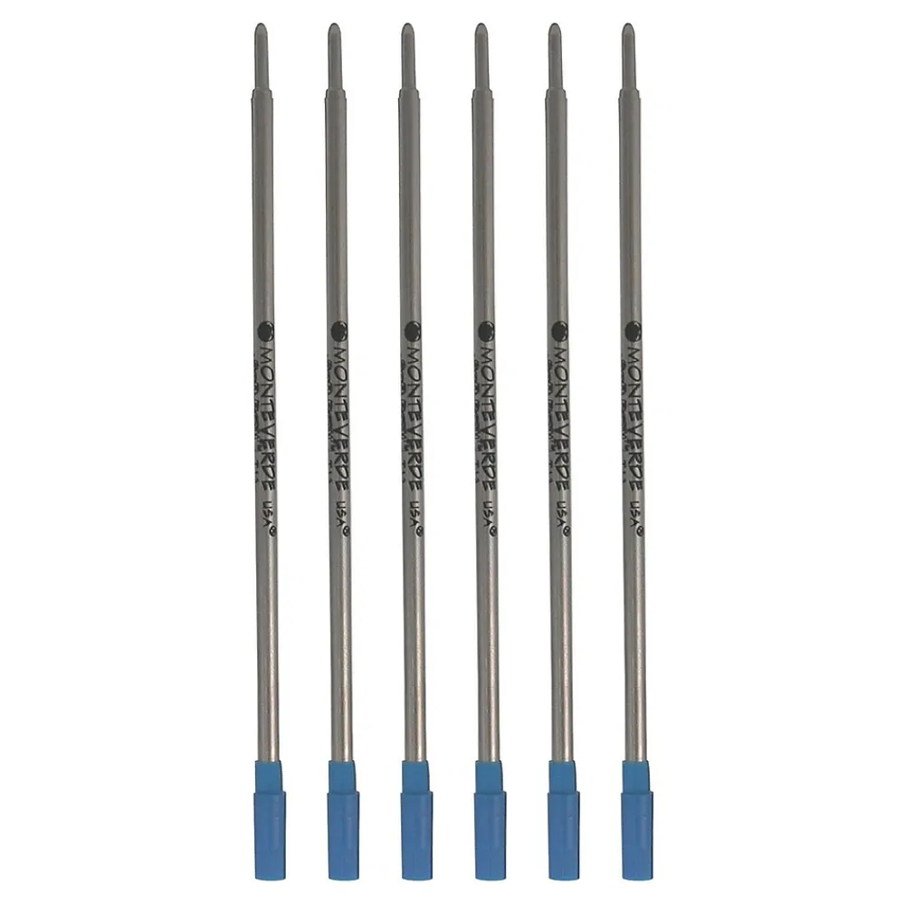 Monteverde® Blue medium point Soft Roll™ ballpoint refill made to fit DuPont® ballpoint pen offers latest technology for the smooth writing experience. Refill provides low viscous ink with nickel plated brass tube and swiss tip. Sold as 6 per pack.