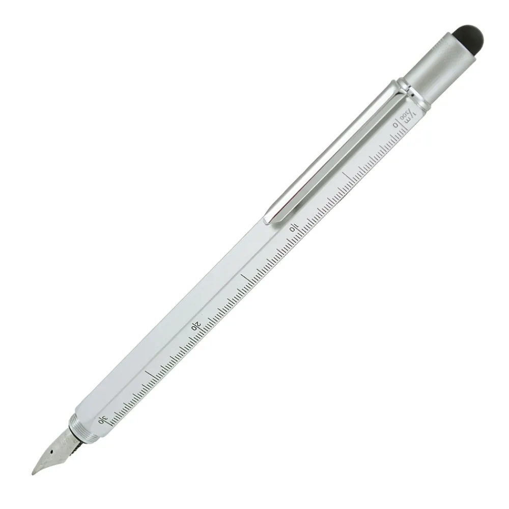 This refillable fountain pen features a smooth and reliable nib. This sturdy metal pen has a conductive rubber stylus that is compatible with any touch screen device.