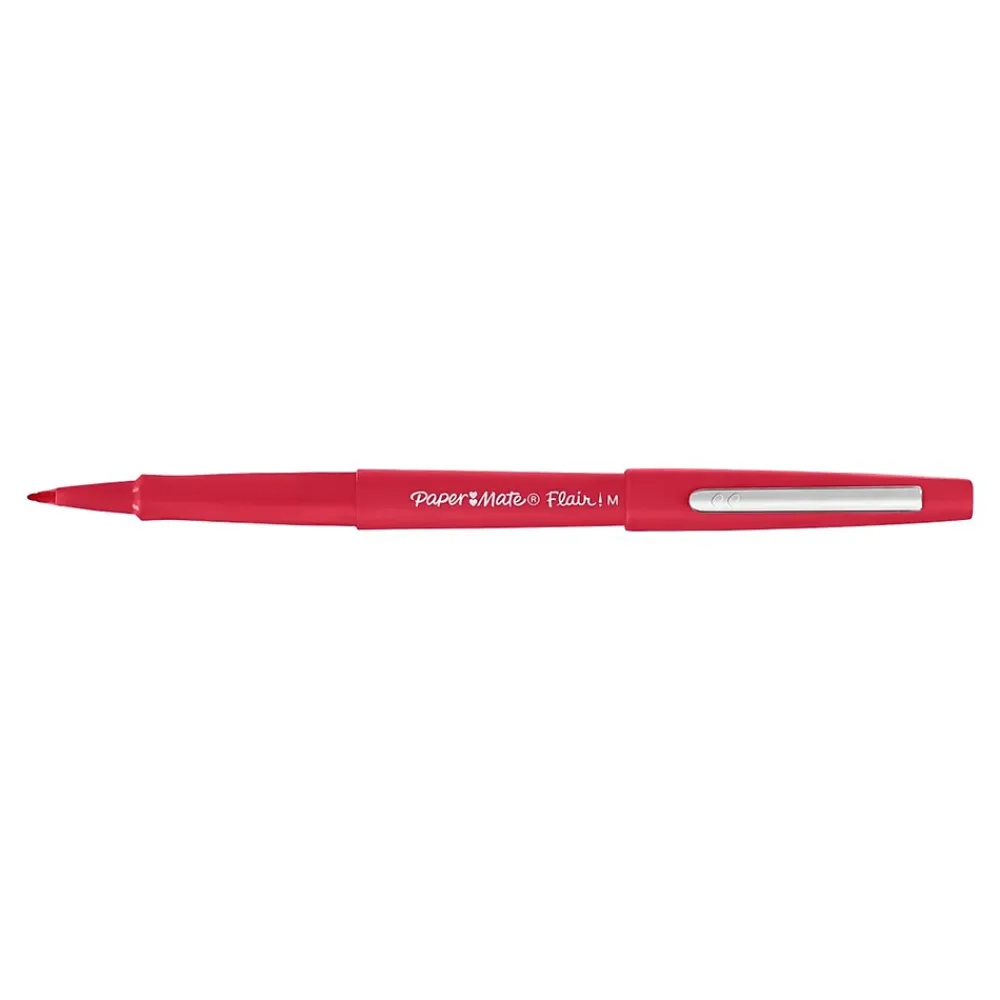 Experience comfortable writing with this medium-point 0.7mm red felt-tip pen. The bright red ink is water-based and acid-free, so writing is clean and clear, even after extended periods of time. This Paper Mate Flair felt-tip pen features a 0.7mm point, so lines are thick and bold without smearing or bleeding through the paper, while the Point Guard technology keeps it from fraying.