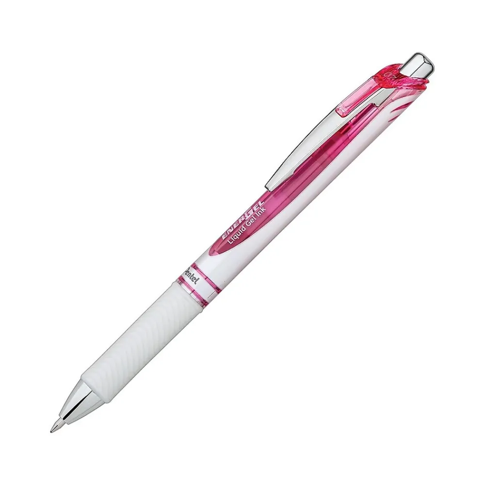 Join the fight against breast cancer with these medium-point pink liquid gel ink retractable pens. The ink is a brilliant pink, so whatever you write is sure to stand out, and the latex-free grip provides a comfortable writing experience. These Pentel EnerGel Pearl Deluxe RTX retractable pens boast a medium point for a rich flow of ink.