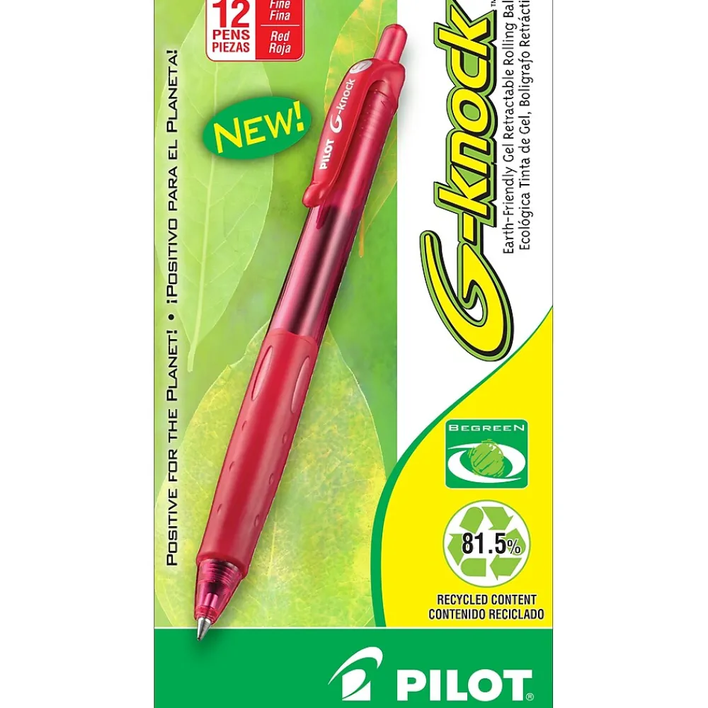 Contribute to a cleaner environment as you write with Pilot Recycled G-Knock BeGreen gel pens. G-Knock gel ink pens feature long lasting G2 ink and are made from 81.5% recycled content. This black gel ink pen is equipped with a comfortable, contoured rubber grip and is refillable for continued use. bber grip and is refillable for continued use.